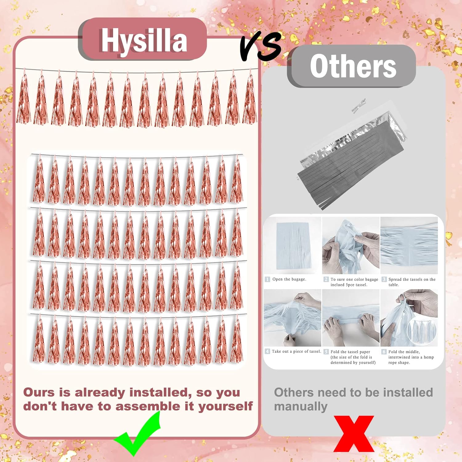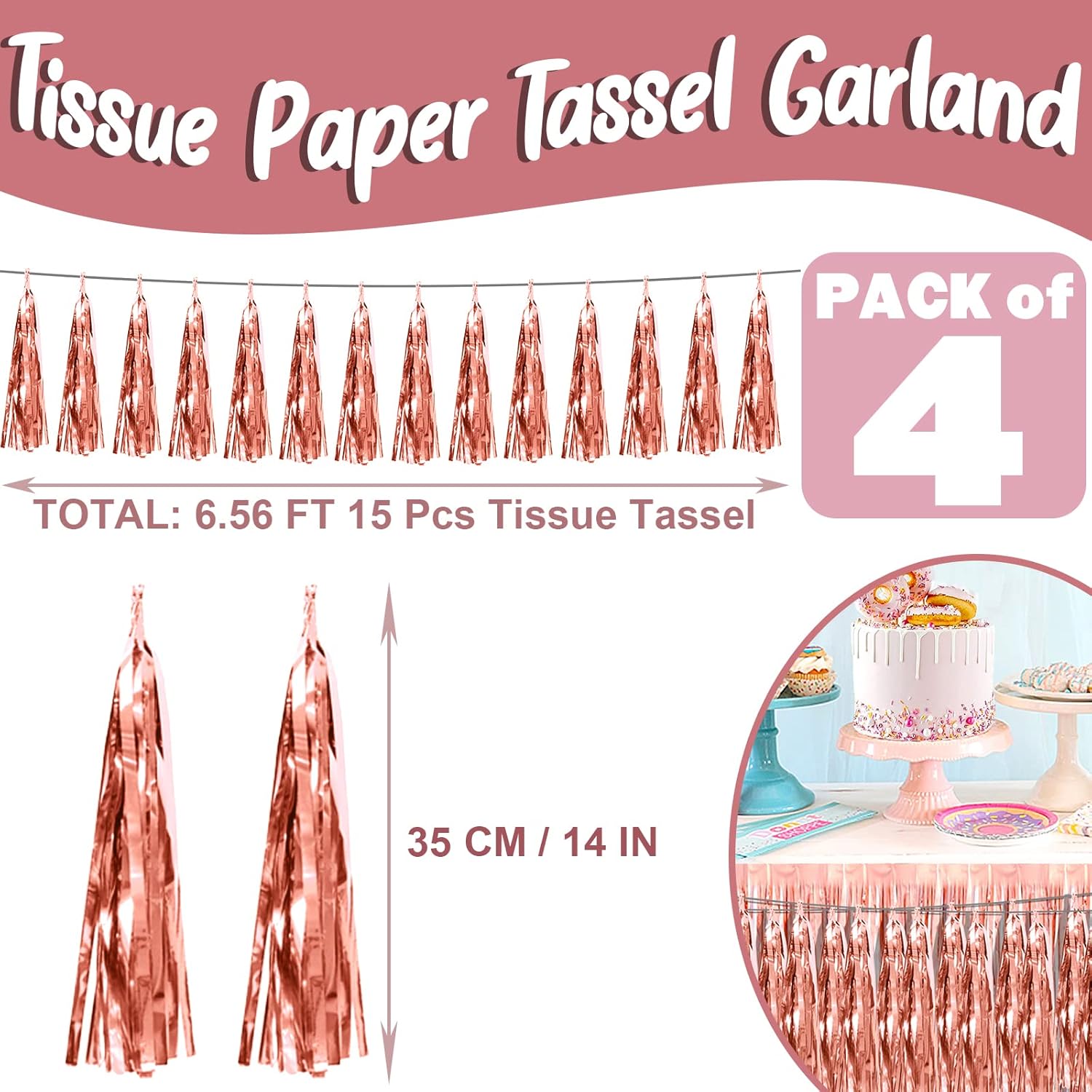 4P Rose Gold Foil Fringe Metallic Tassel Streamers Banner Tassel Garland for Parade Floats, Bachelorette, Wedding, Birthday, Halloween, Christmas, Bridal/Baby Shower Party Decorations