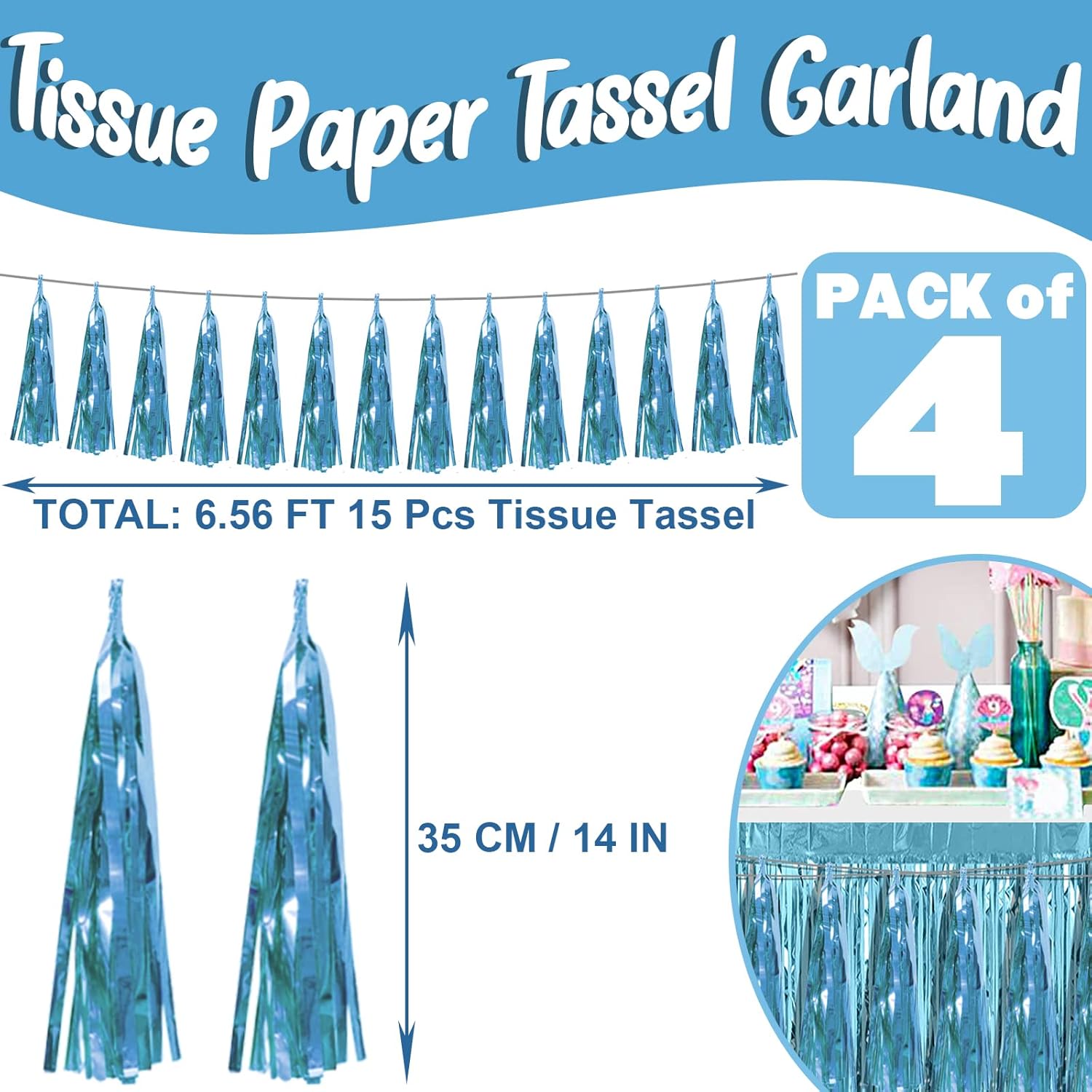 • 【Light Blue Party Supplies Set】: The total length of the light blue birthday tassels banner is 39.3 feet, divided into 4 strips, each 9.8 feet long. Each banner contains 15 tassels, and each tassel measures 14 inches, for birthday decorations many occasions, and so on