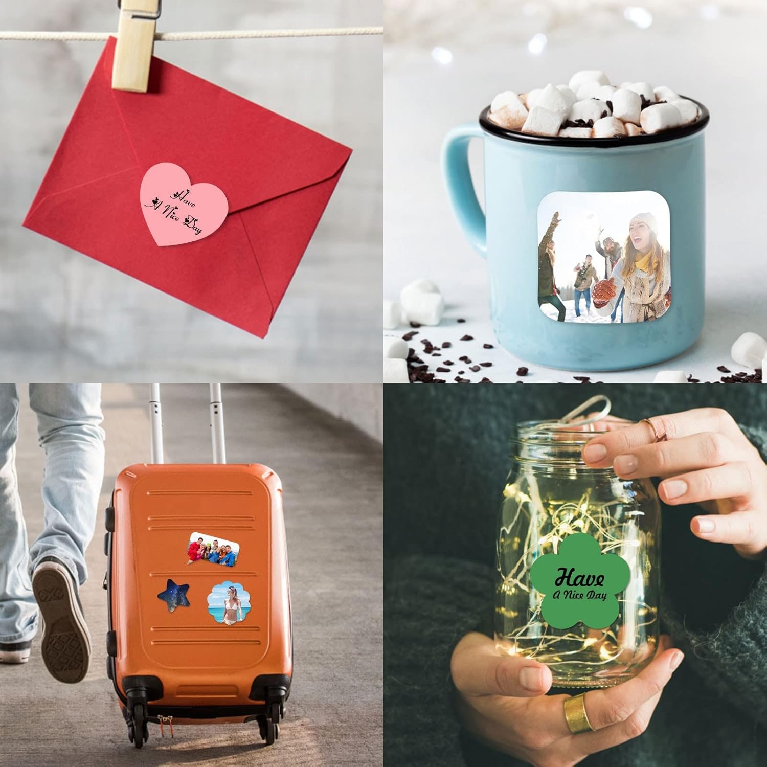 • Occasion: Our personalized stickers can seal holiday or birthday gifts, and labels for jars, bottles, coffee cups, bags, envelopes, computers, suitcases, etc.