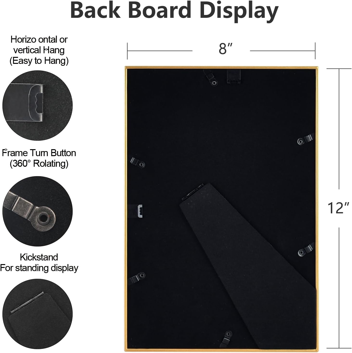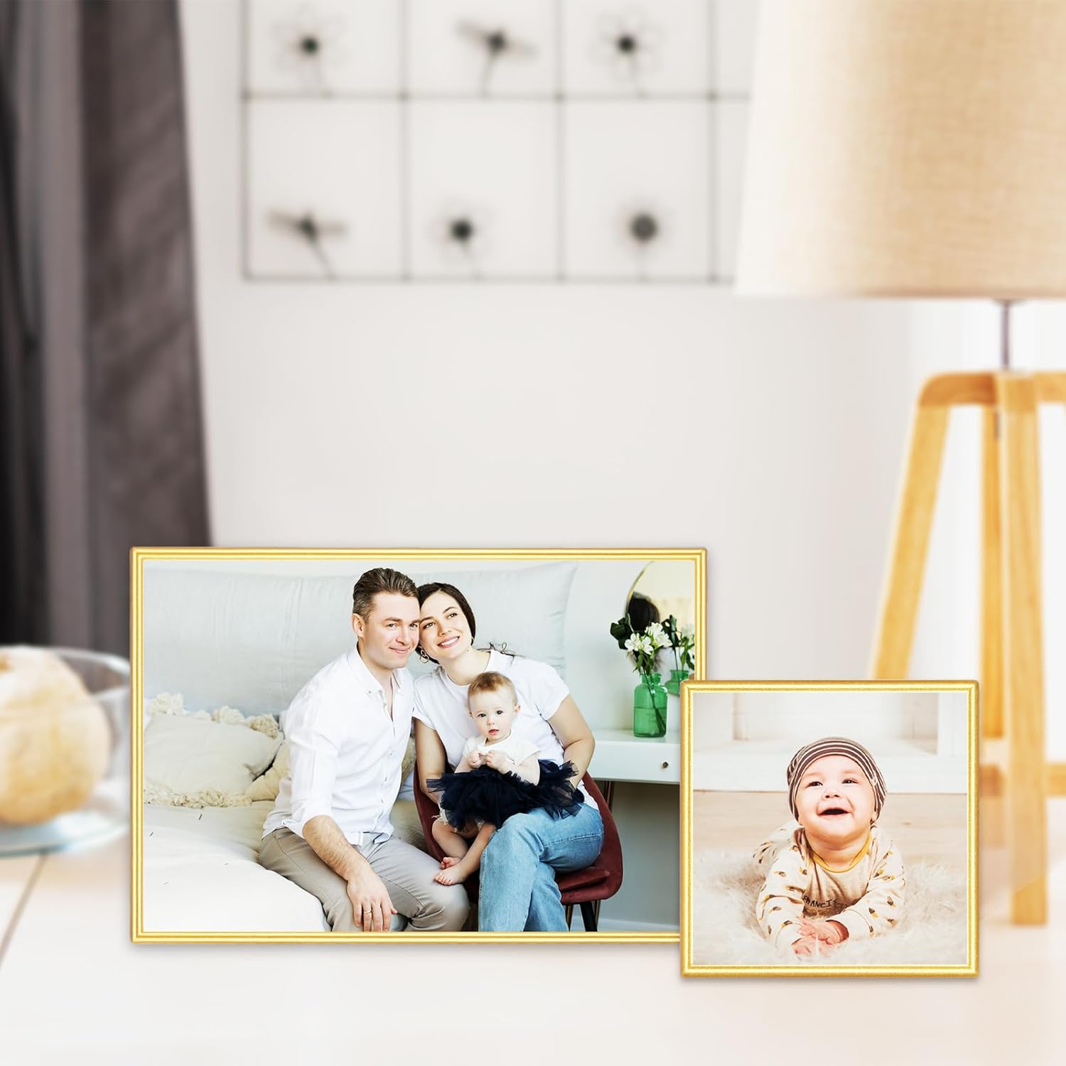 8x12 Picture Frame Set of 2, Matte Gold Modern Simple Thin Aluminum Metal Photo Frame with HD Real Glass, Display for Tabletop and Wall Collage, 2 Pack