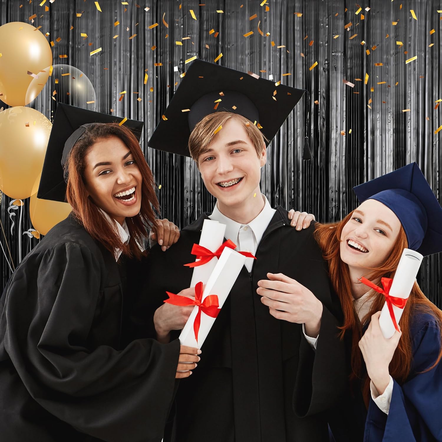 Crosize 2 Pack 3.3 x 9.9 ft Black Foil Fringe Backdrop Curtain, Streamer Backdrop Curtains, Streamers Birthday Party Decorations, Tinsel Curtain for Parties, Photo Booth Backdrops, Party Décor