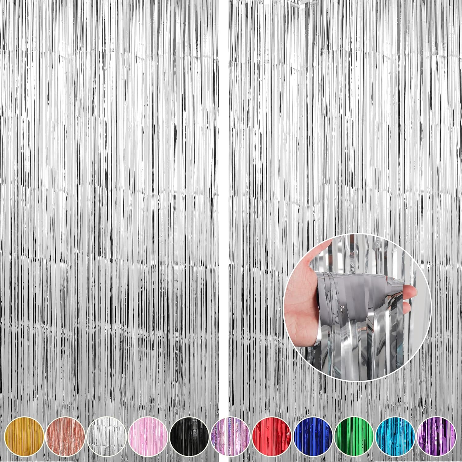 Crosize 2 Pack 3.3 x 9.9 ft Silver Foil Fringe Backdrop Curtain, Streamer Backdrop Curtains, Streamers Birthday Party Decorations, Tinsel Curtain for Parties, Photo Booth Backdrops, Party Décor