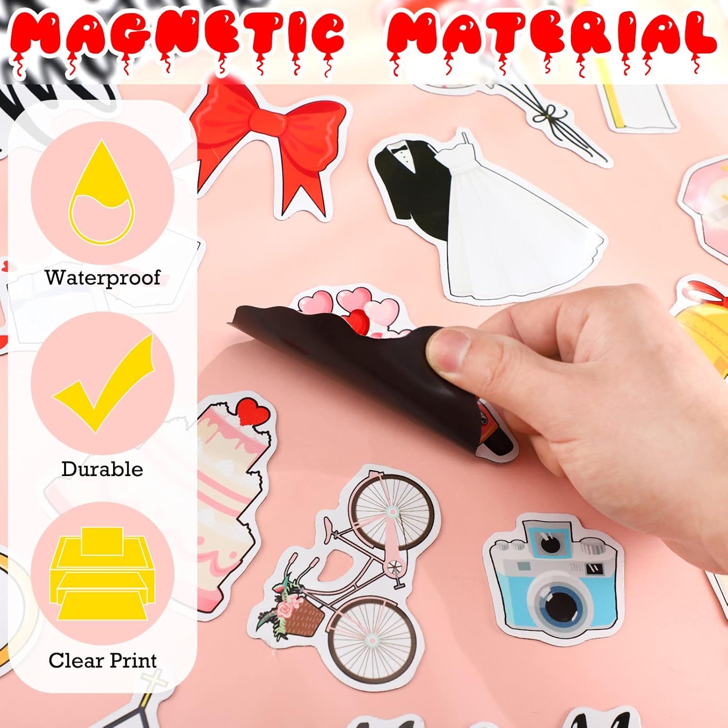 • Adorable Size and Handcraft Sticking: these cute just married fridge magnets have different sizes and can easily attract people's attention; Wedding become more interesting; The cute wedding magnets should be installed by yourself, and you will experience the fun of the wedding during the process of installing, you will feel happy and proud when you finish, and every time you see them, the sense of success will always appear and run in your heart