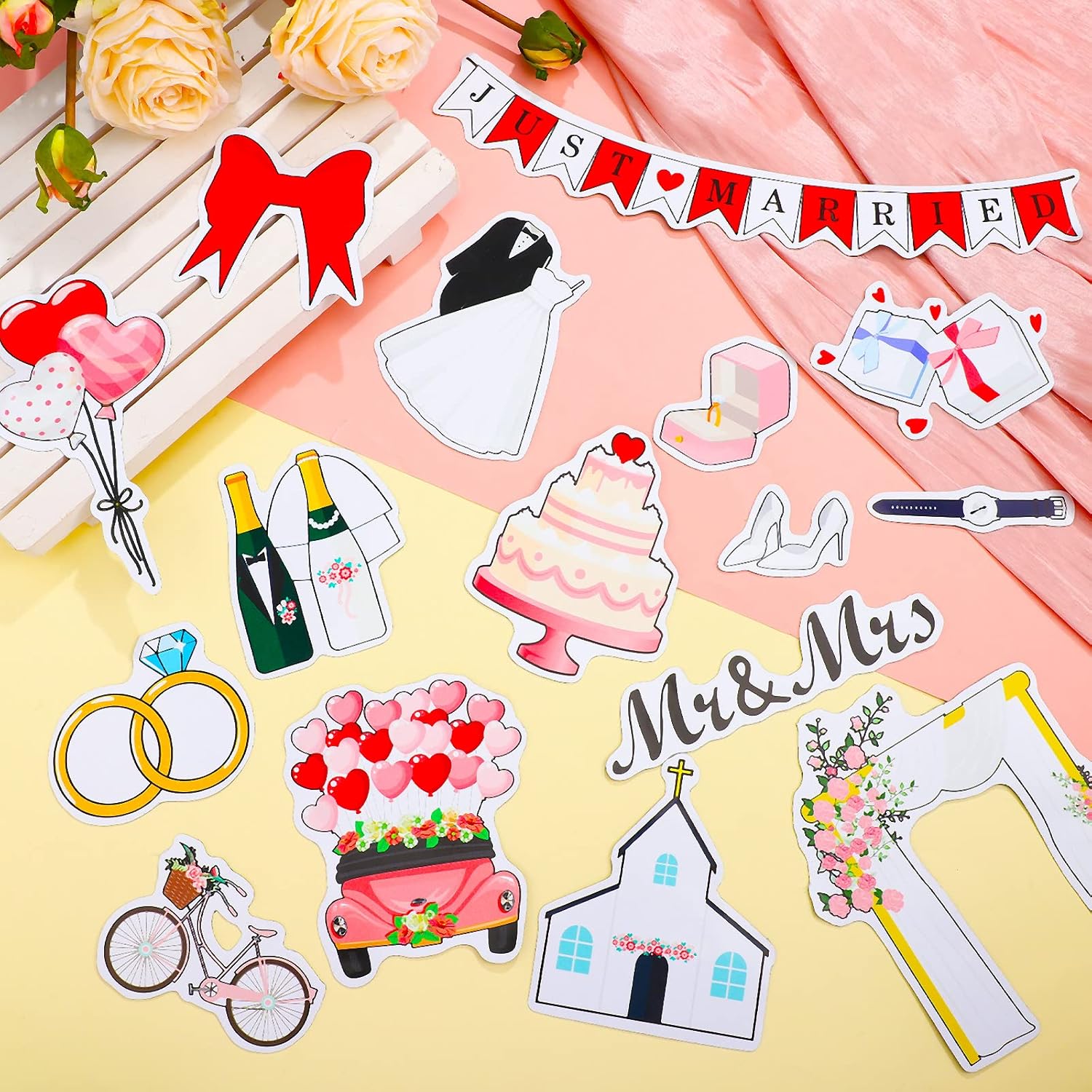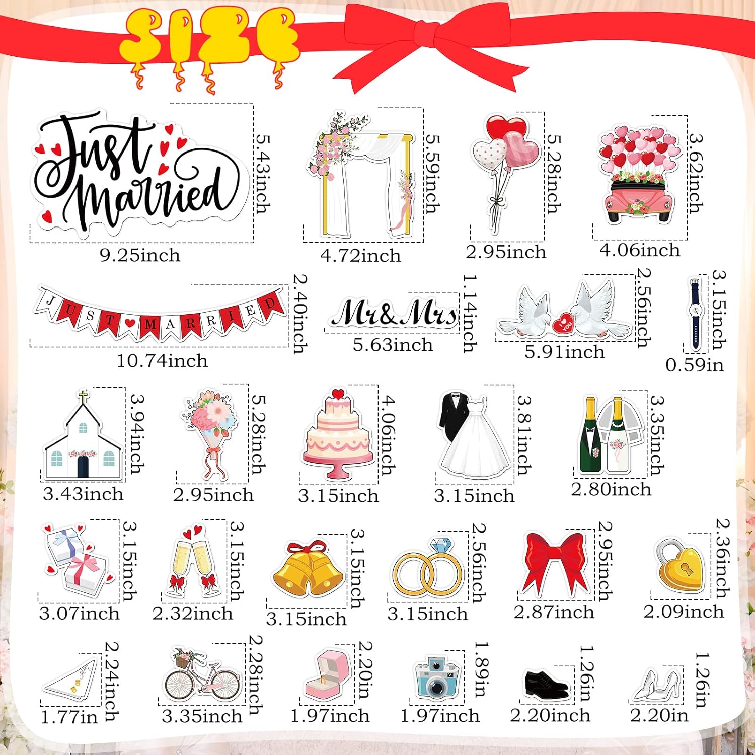 • Just Married Car Decorations: you will receive 25 pieces of wedding decorations for car in total, which comprise 24 pieces of magnets for cars decoration, 1 just married window cling, ideal for your wedding or honeymoon photography and decorations