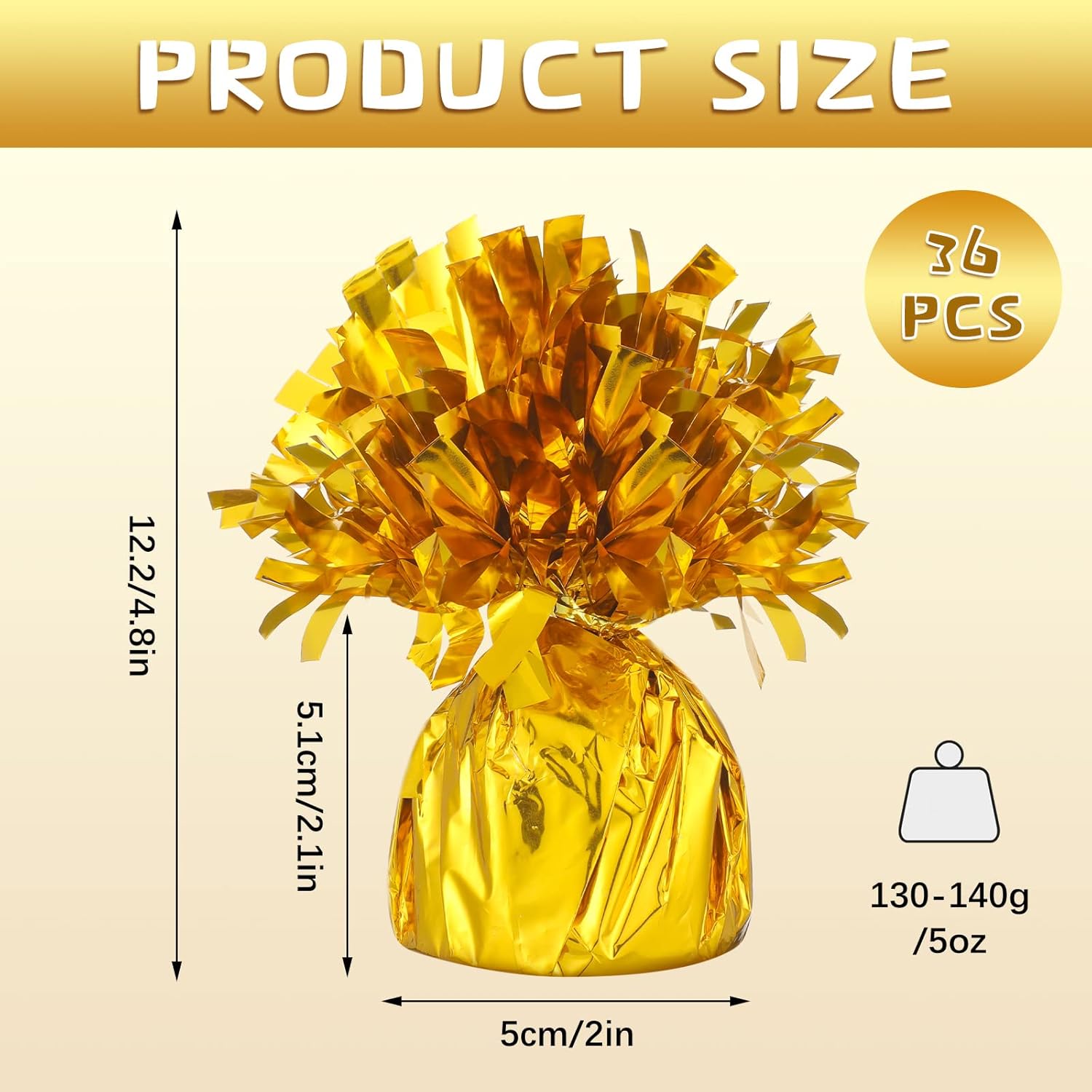36 Pcs Metallic Balloon Weights Set Heavy Solid Metallic Anchor Balloon Holder Weights for Balloons Table Centerpiece DIY Decor for Birthday Party Favors Wedding 2.5 x 5 Inch(Gold)