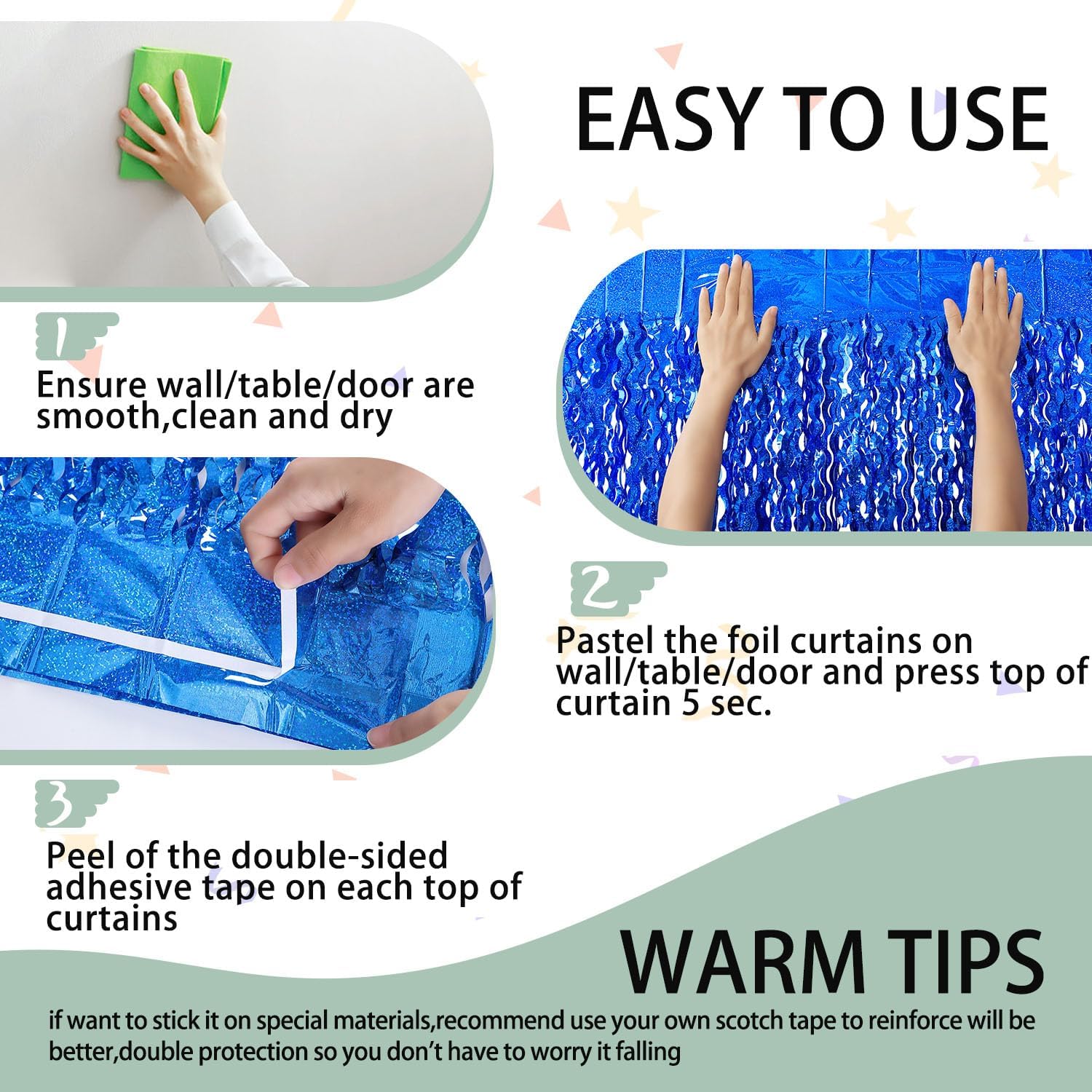 • Easy To Use:This foil backdrop comes with double sided tape on the back of them, what you need to do is just gently take it out of the package, peel the tape off then paste the fringe curtain on the top of wall or door