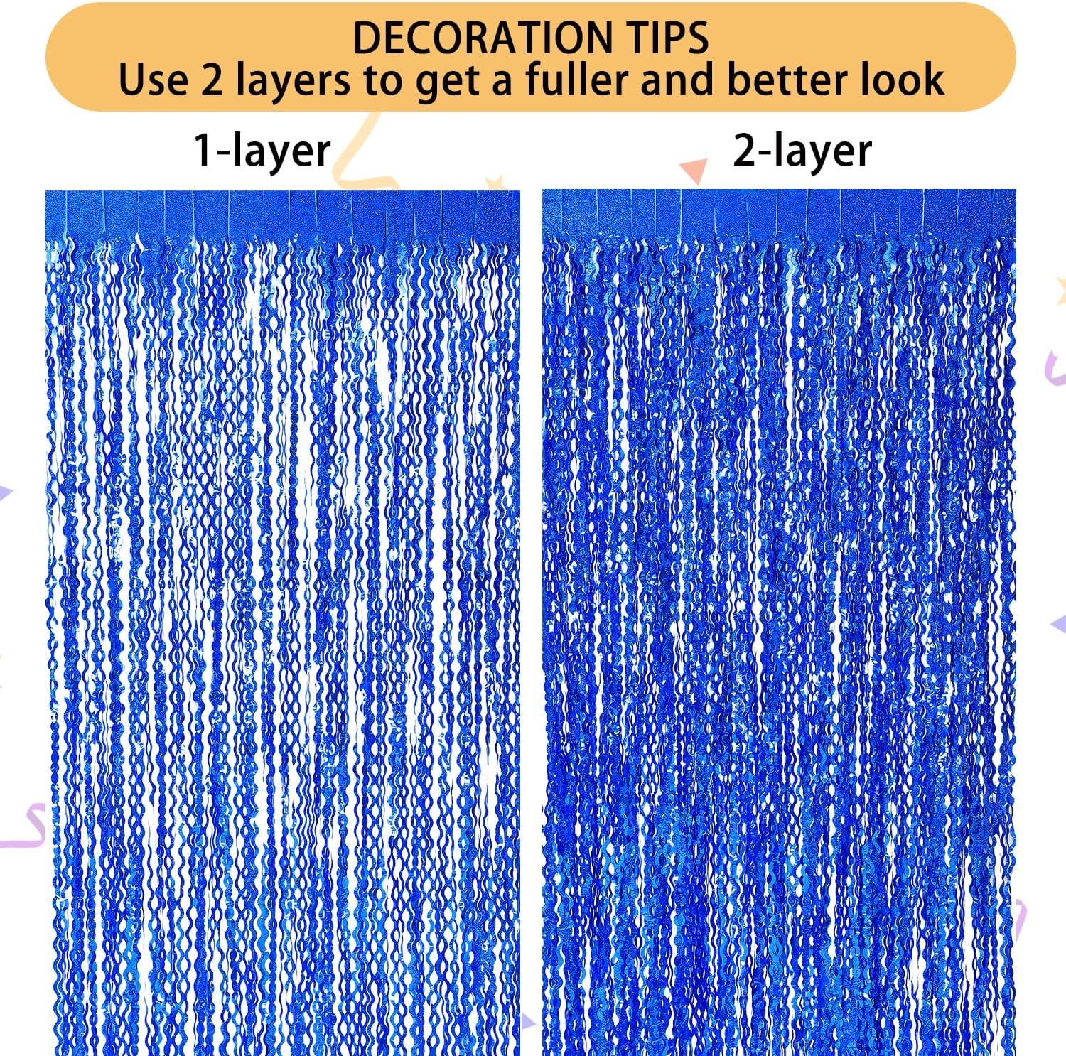 • LATEST Shiny Surface and Wavy Shape Tinsel Backdrop:The navy blue foil curtain backdrop is made of aluminium foil with shiny surface wavy shape, good for adding sparkle as decorations for parties