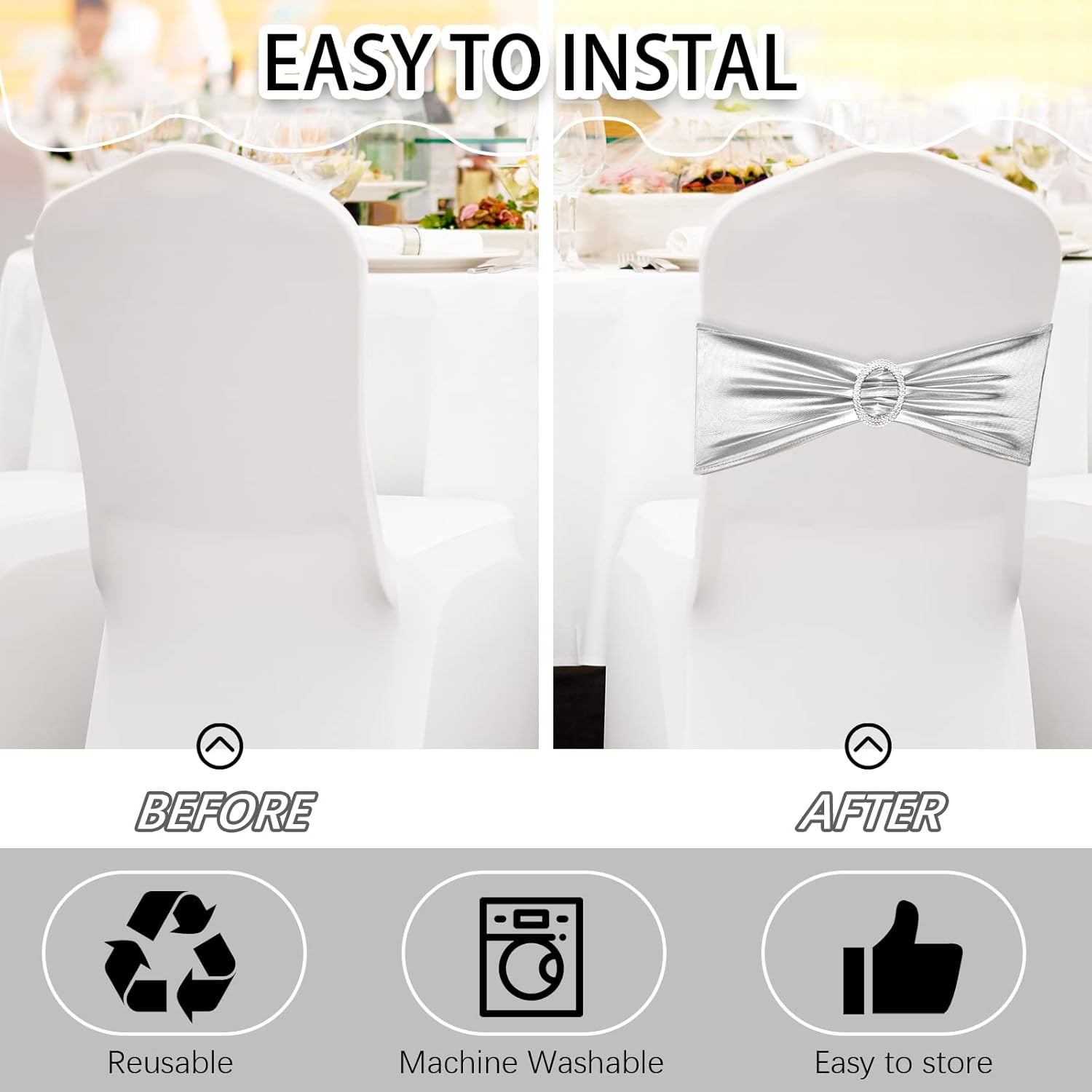 • Enough Quantity: 150 pieces chair sashes with buckle slider can meet your needs of various parties and activities; Each chair bands measures about 6 x 15 inches/ 15 x 36 cm, which is suitable for a chair of 13 to 20 inches, adding elegance to your banquet and a touch of sophistication to any formal occasions