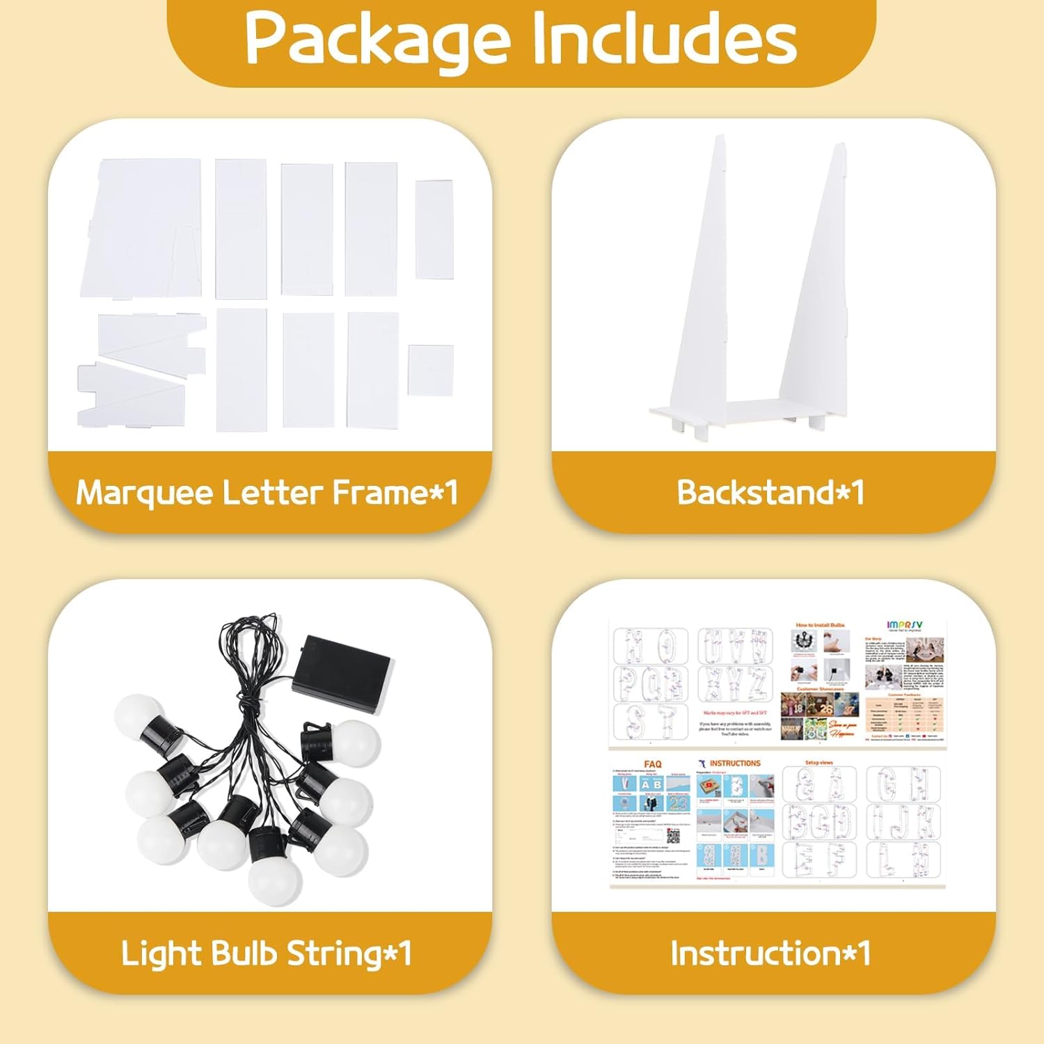 • Package Includes: A set of light up letters for party containing the pre-cut letter frames, a light string with several bulbs and assemble guiding manual. ( Noted: Glue gun and batteries are not included