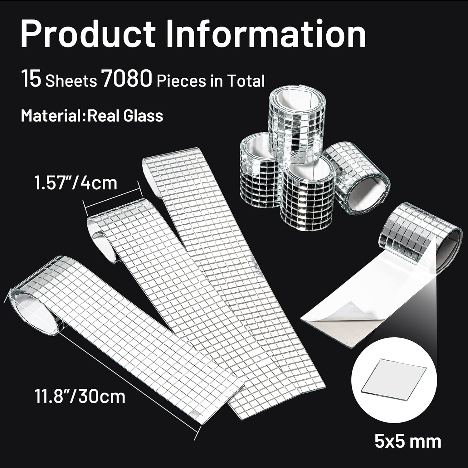 • 7080 PCS Disco Stickers: Package includes 15 strips mirrored tiles strips, each strip contains 472 pieces disco tiles, you will get 7080 pieces disco tiles in total. You can DIY as you like, bring more creativity to your crafts