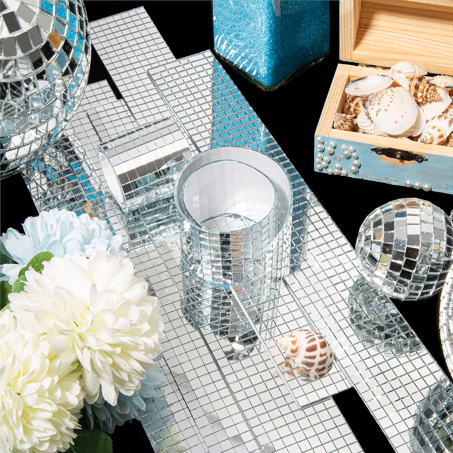 • Easily Make Crafts: These disco tapes are very flexible, easy to cut and easy to attach to objects. You can easily make beautiful and eye-catching small crafts with these mirror tiles, adding visual interest and texture to the space