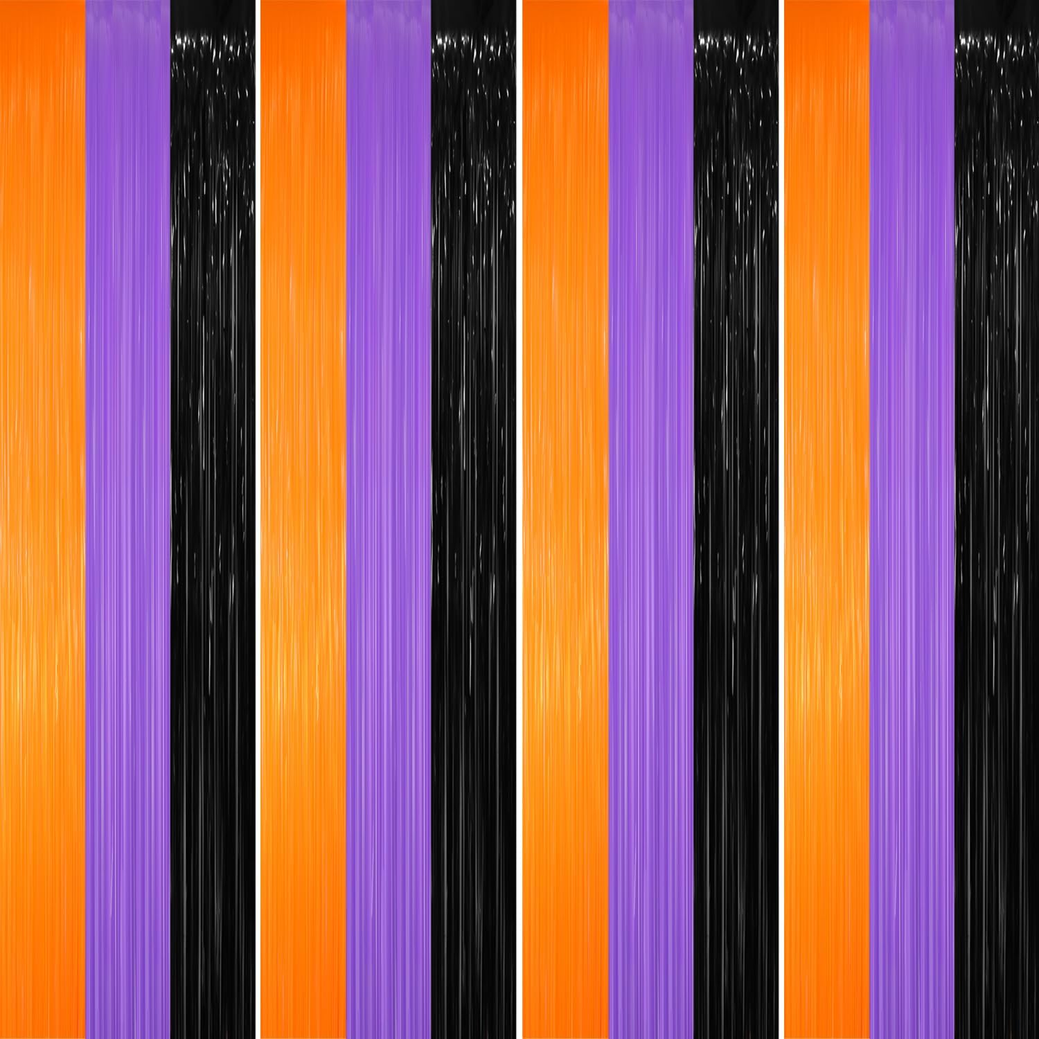 • Package Includes:4 Packs Black&Orange&Purple Foil Fringe party backdrop
