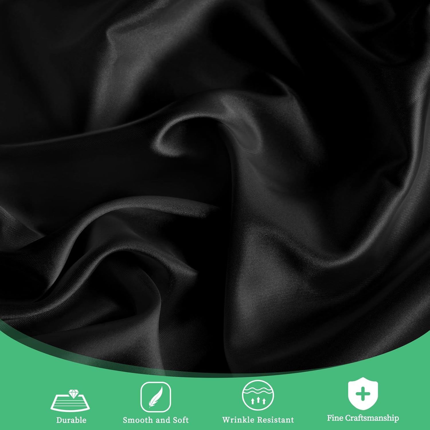 fani 12 Pack 108 Inch Black Satin Tablecloth - Premium Bright Silky Round Tablecloth Overlay Smooth Fabric Table Cover, Table Decoration for Wedding Party Banquet Events Restaurant Kitchen Dining