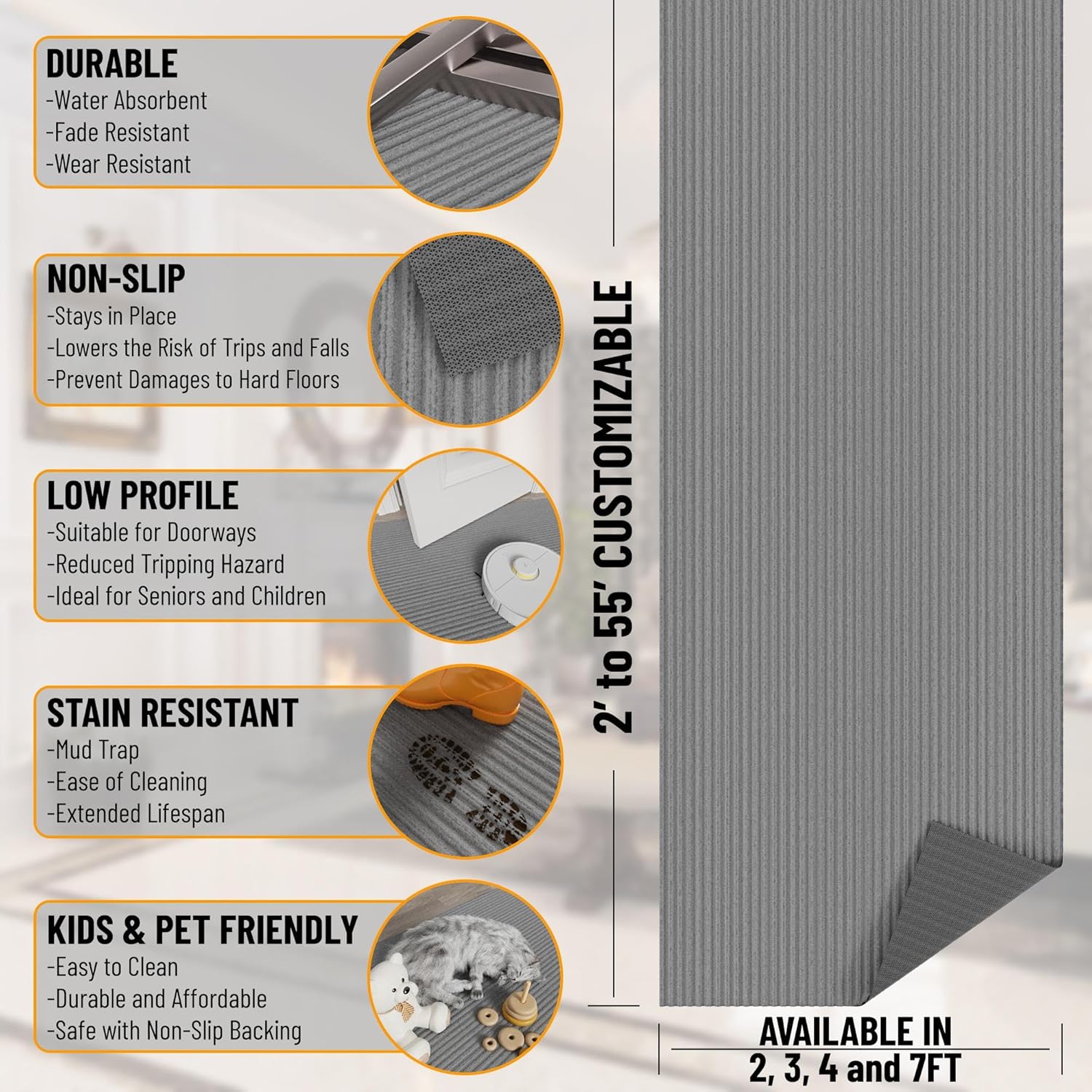 • Enhanced Durability with Scrape Rib Pile Texture: Made from strong, wear-resistant polyester featuring a scrape rib pile that traps dirt and debris on the surface for easier cleaning while providing excellent durability. The slim build lays flat—prevents curling or bunching and fits easily under doors and furniture.