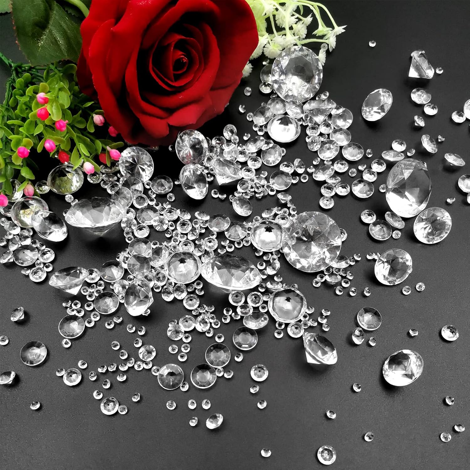 1000 pcs Acrylic Diamond Gems, Clear Acrylic Diamonds Decorations Faux Diamonds Table Scattering Gemstones Vase Filler for Party, Event, Wedding, Birthday (Clear,30mm, 20mm, 12mm, 8mm, 4mm)