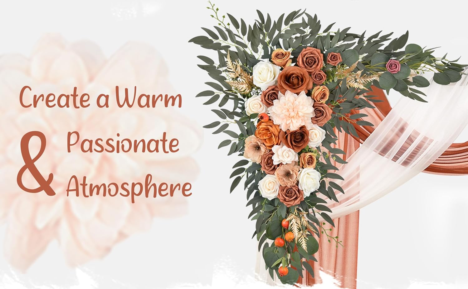 Wedding Arch Flowers with Drapes Kit (Pack of 4) - 2pcs Artificial Terracotta Deluxe Swag with 2pcs Sheer Drapes for Wedding Ceremony Arbor Reception Backdrop Rose Floral Decoration