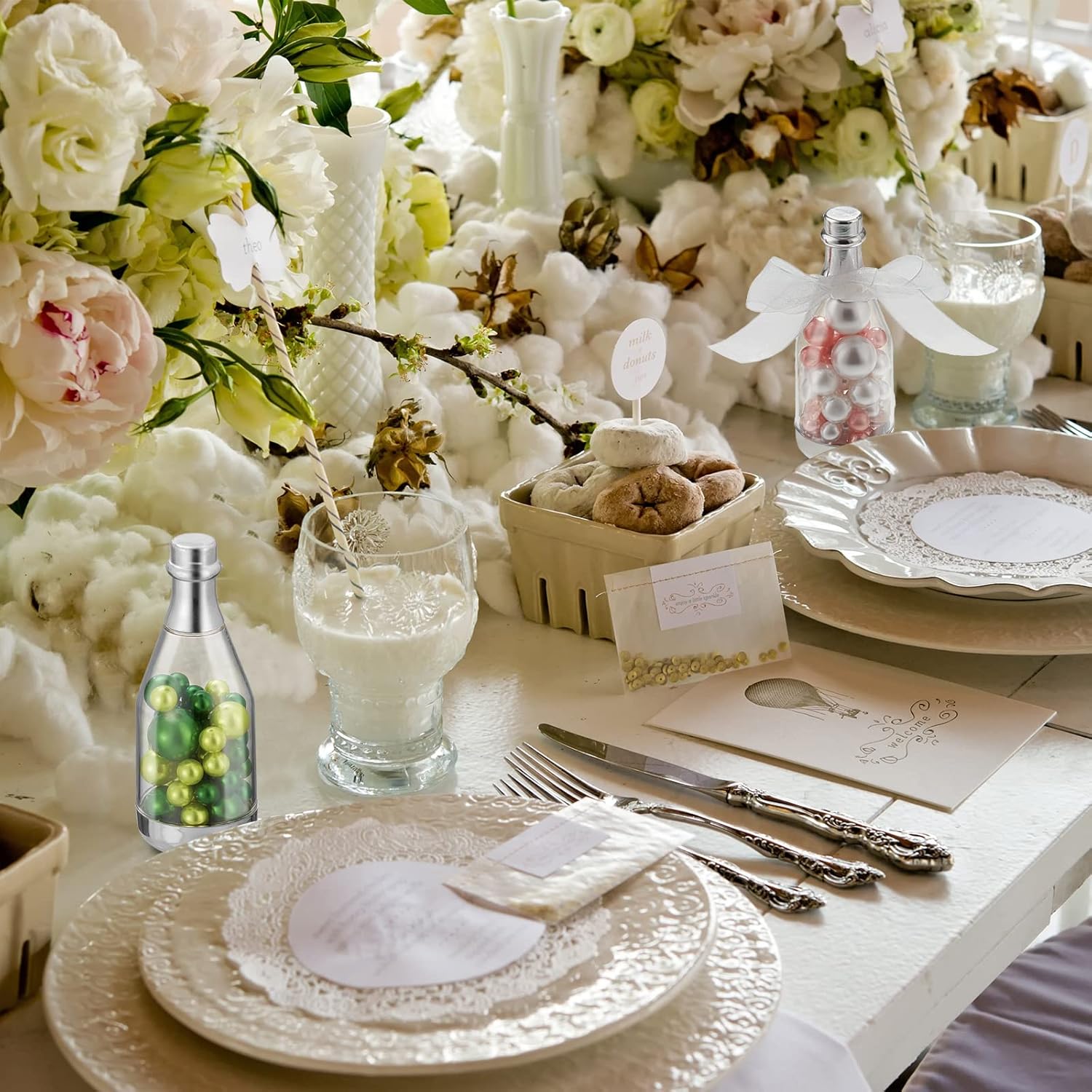 Cunhill 54 Pieces Champagne Candy Bottles Bridal Shower Favors Mini Baby Bottle for Baby Shower Bulk Small Plastic Wine Alcohol Containers for Wedding Birthday Party(Silver)
