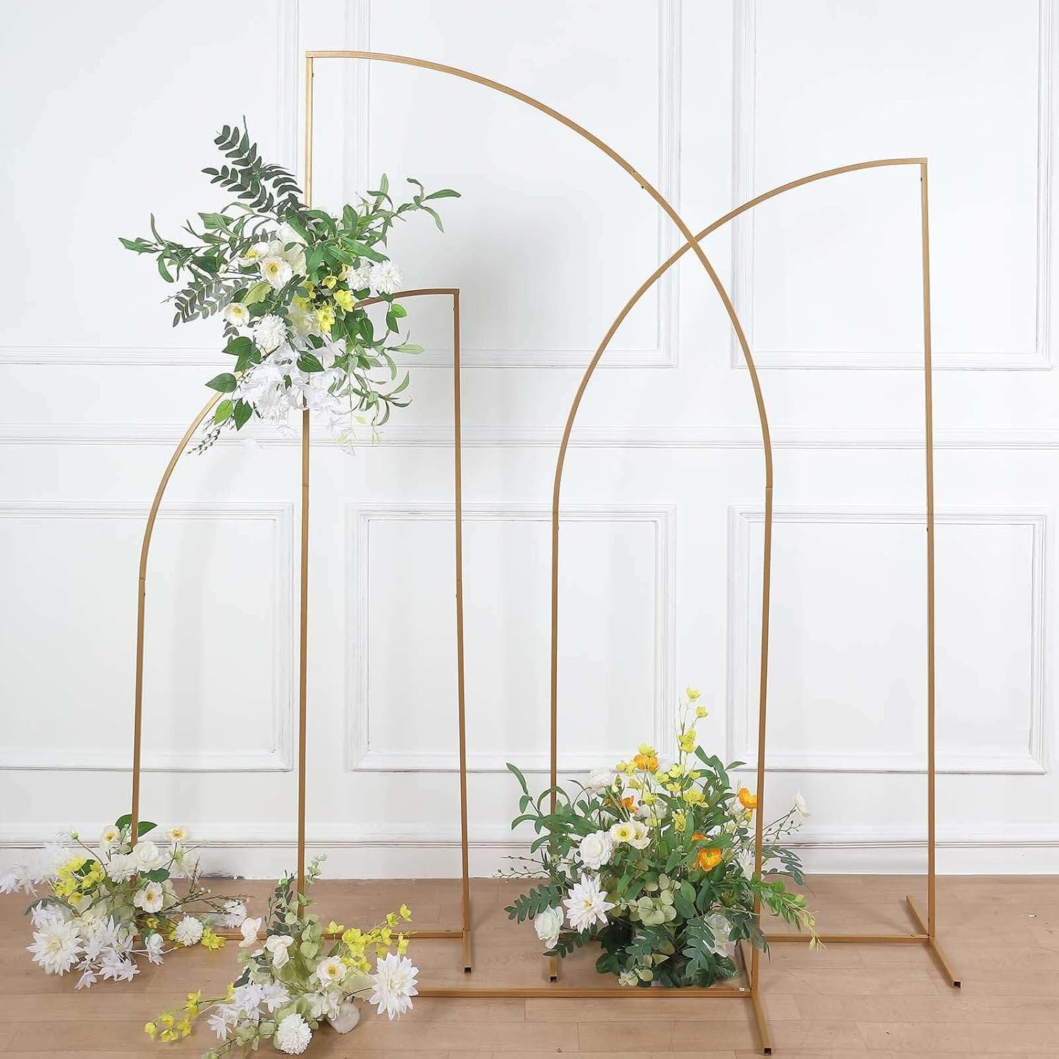 Tableclothsfactory 7ft Gold Metal Wedding Arch Chiara Backdrop Stand, Half Moon Floral Frame Arbor Display