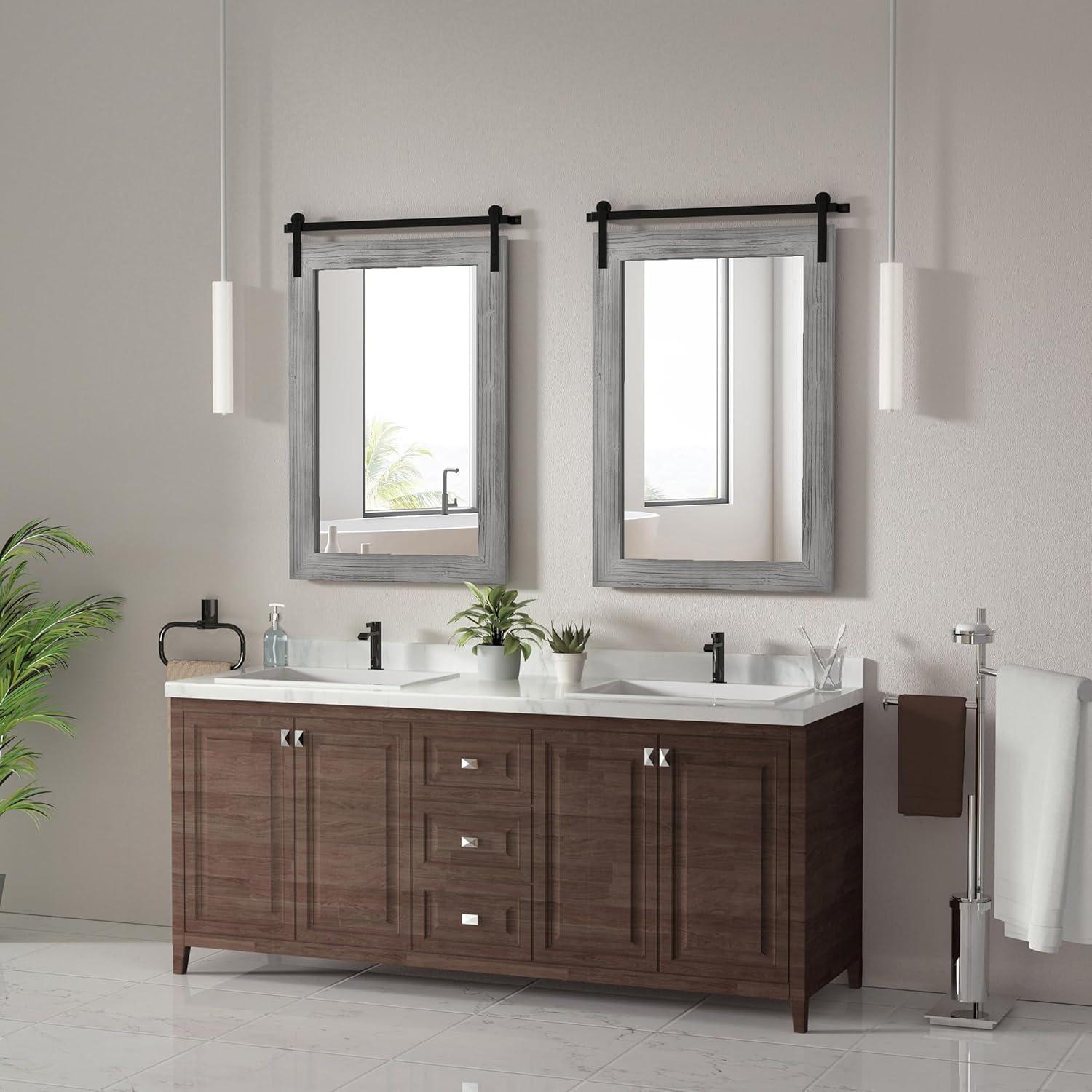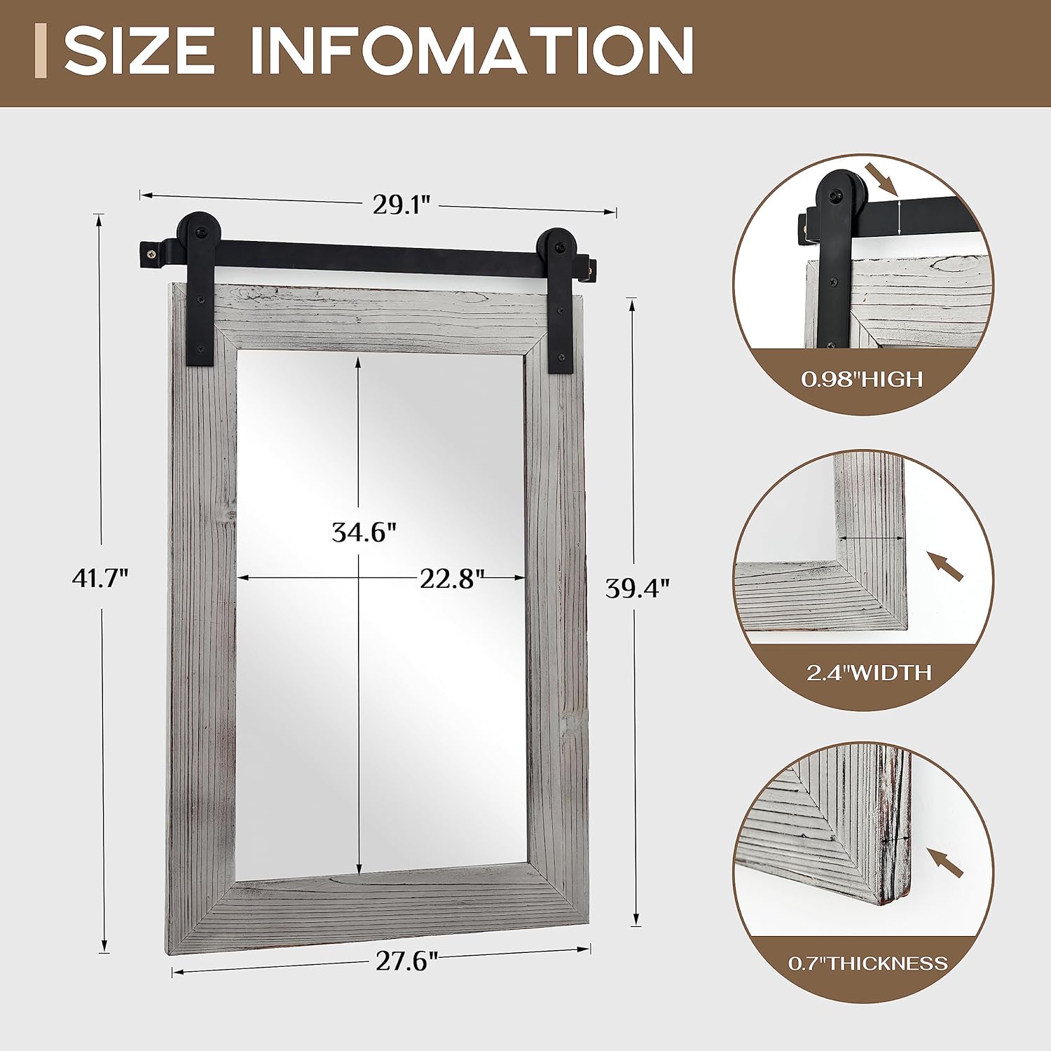 COGOOD Farmhouse Bathroom Mirror - 42 x 29 Rustic Barn Door Style Mirror for Living Room, Entryway, Vanity Wall Decor (Grey)