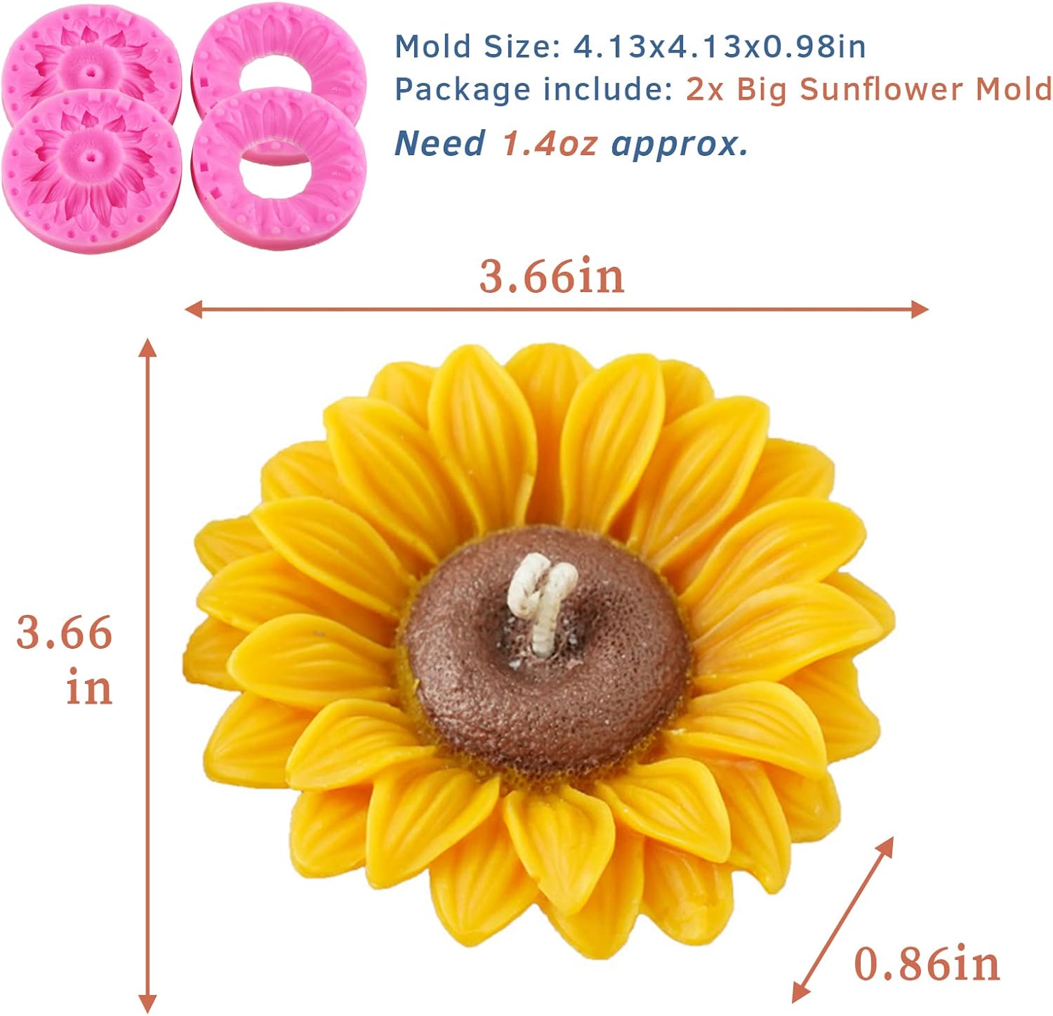• 【PRACTICAL SIZE】The package includes 2x Big Sunflower Silicone Mold. Each product size is about 9.3x9.3x2.2cm/3.66x3.66x0.86 in, need about 1.5oz. Practical size for making daily use soap candle and so on