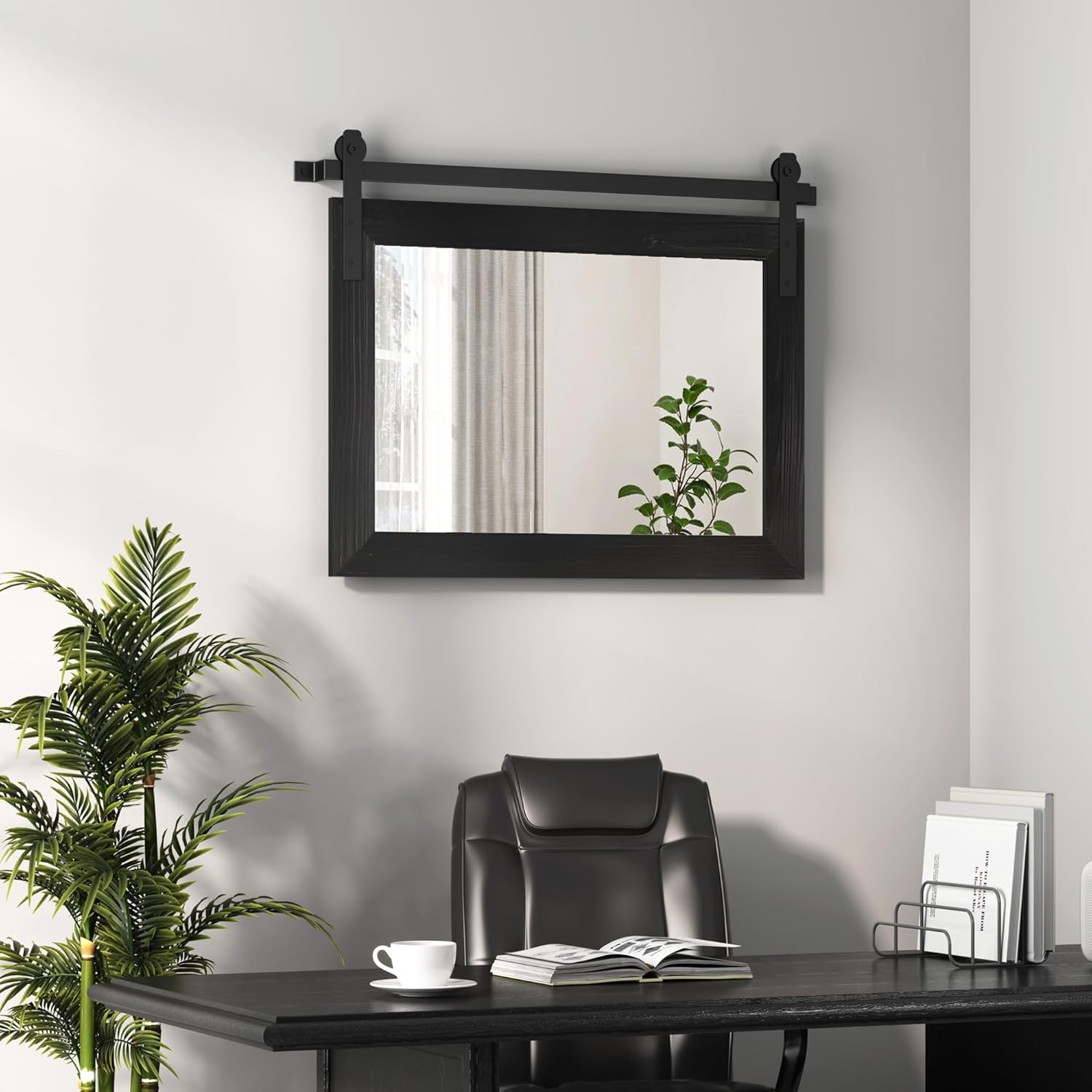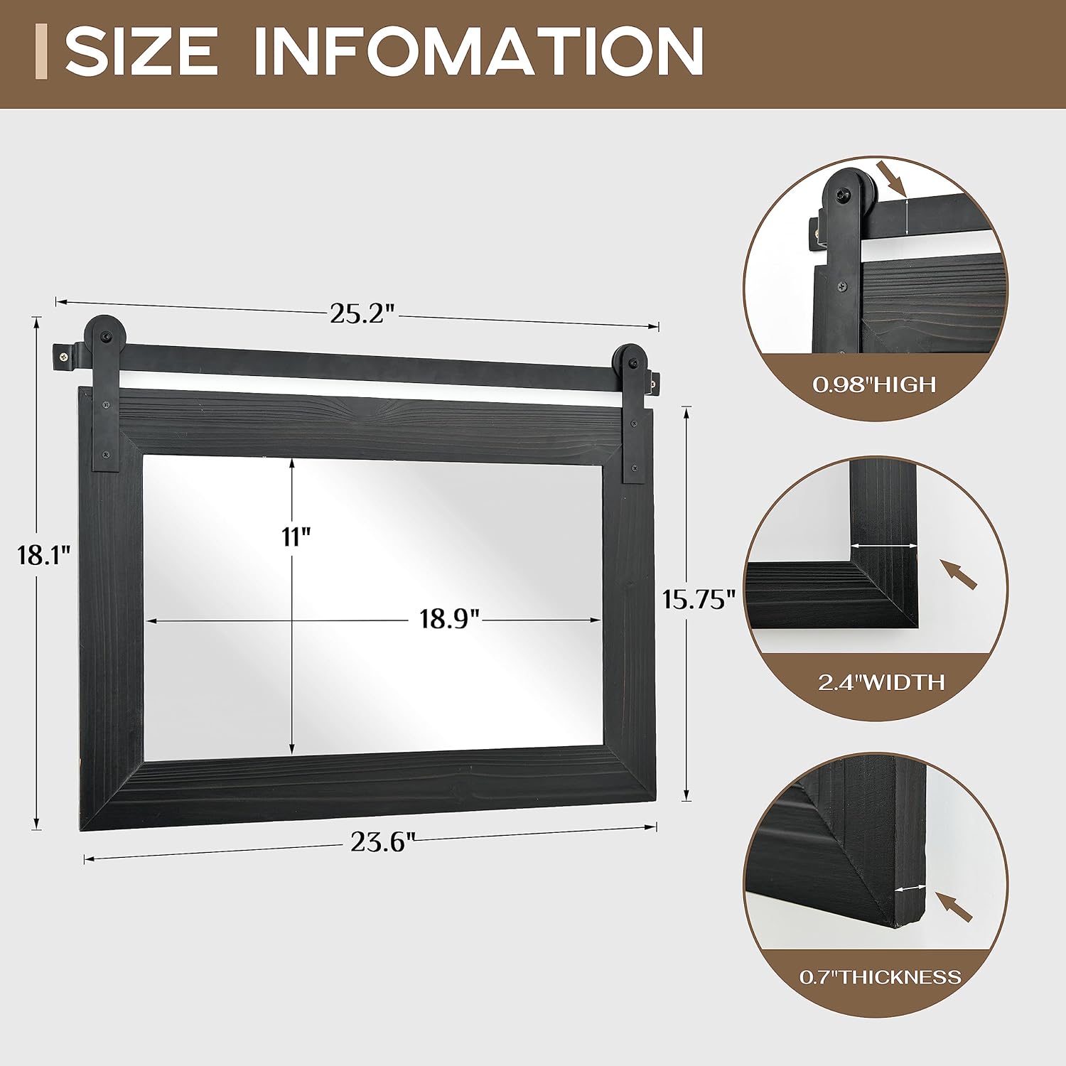 COGOOD Farmhouse Barn Door Mirror - 25" x 18" Rustic Wood Framed Decrative Mirror for Bathroom, Living Room, Entryway Wall Decor (Black)
