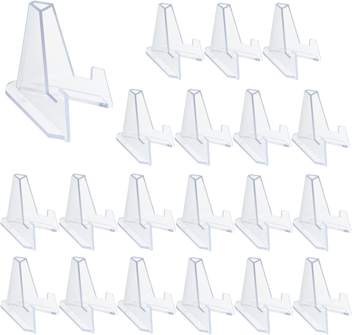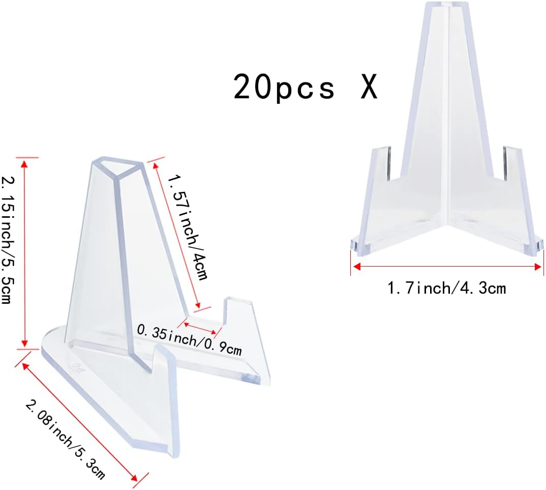 yuntop 20 Packs Acrylic Easel Stands Display Stand Mini Clear Holder for Displaying Small Artworks, Coins, Pocket Watches, Challenge Medals (2.12x 1.4 Inch)