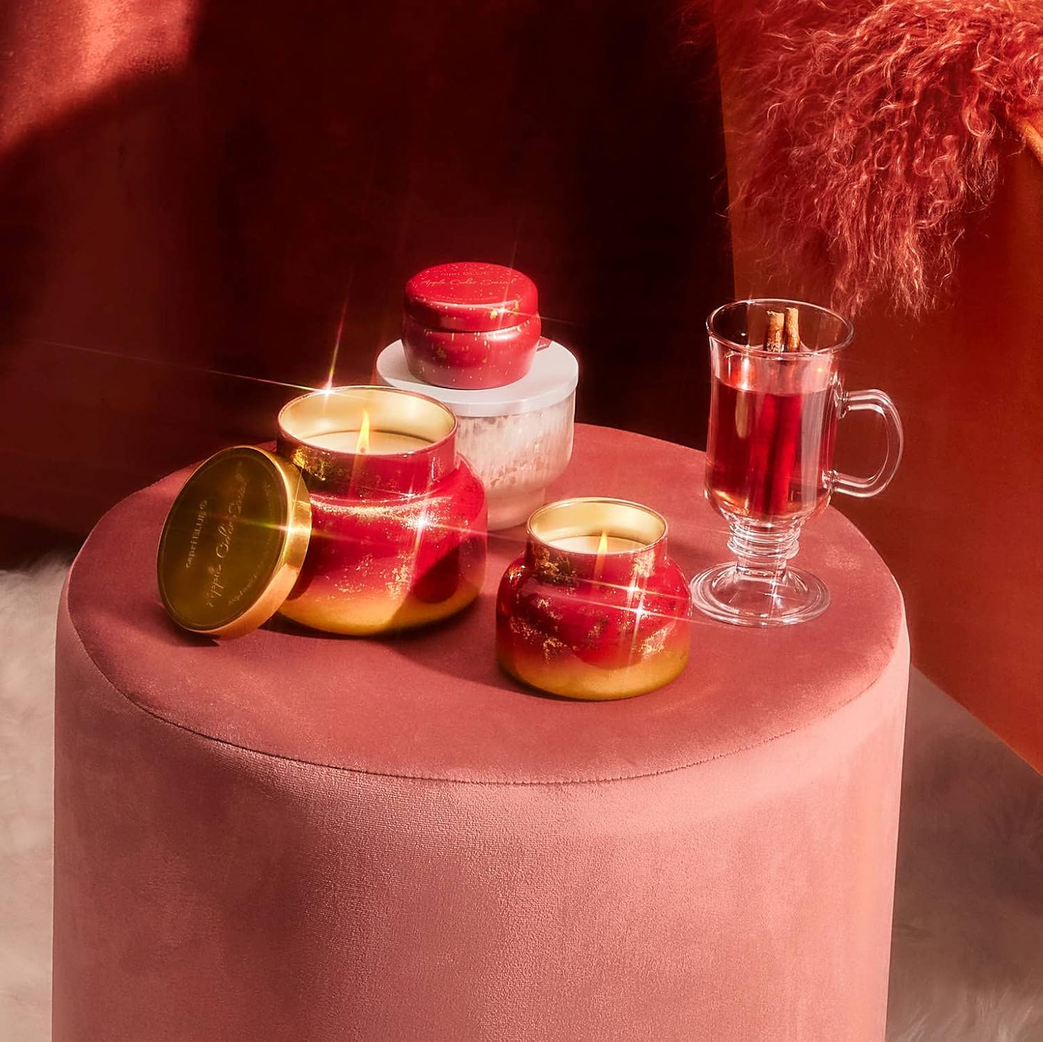 • Apple Cider Social Scented Candles: Capri Blue's sweet apple treat sets the autumn vibes with a punch of spice. These holiday candles have notes of crisp apple, cinnamon, juicy pear with grated clove and fresh nutmeg. Cozy, warm and simply delish!