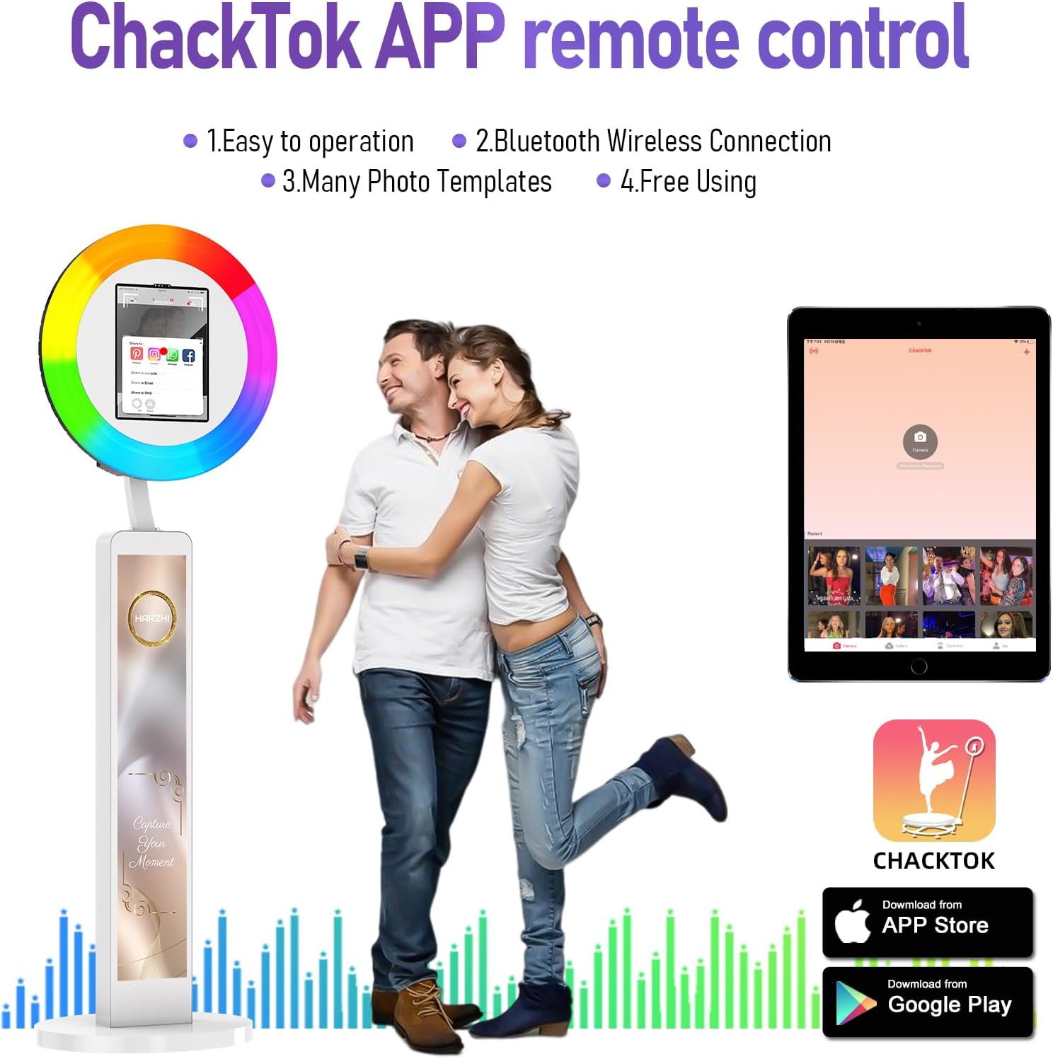 • 【Photo Booth RGB with Ring Light】This Portable Photo Booth is equipped with RGB ring light, 20+ color lighting modes, each lighting mode can choose 1%-100% brightness. you can adjust the color temperature (2700K-6500K) and brightness (0%-100%) by the remote control. And the angle of the ring light is flexible and adjustable.