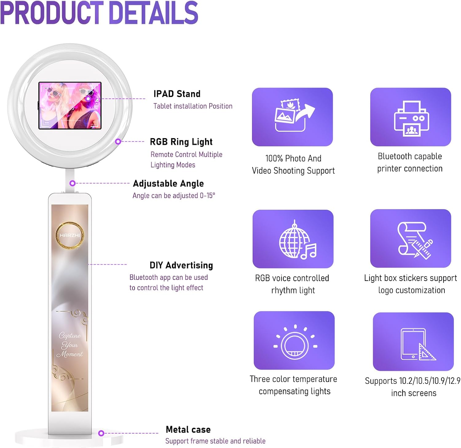 • 【Advantage:Compatible with All Size iPads】HARZHI iPad photo booth can be compatible with all size iPads ( 10.2in 10.9in 12.9in), which is more convenient to use. Other iPad photo booths only work for one size. If you want to change the iPad, you must buy another iPad photo booth. HARZHI Ipad Photo Booth is universal. For 12.9-inch iPads before 2018 , please contact us for customized panels.