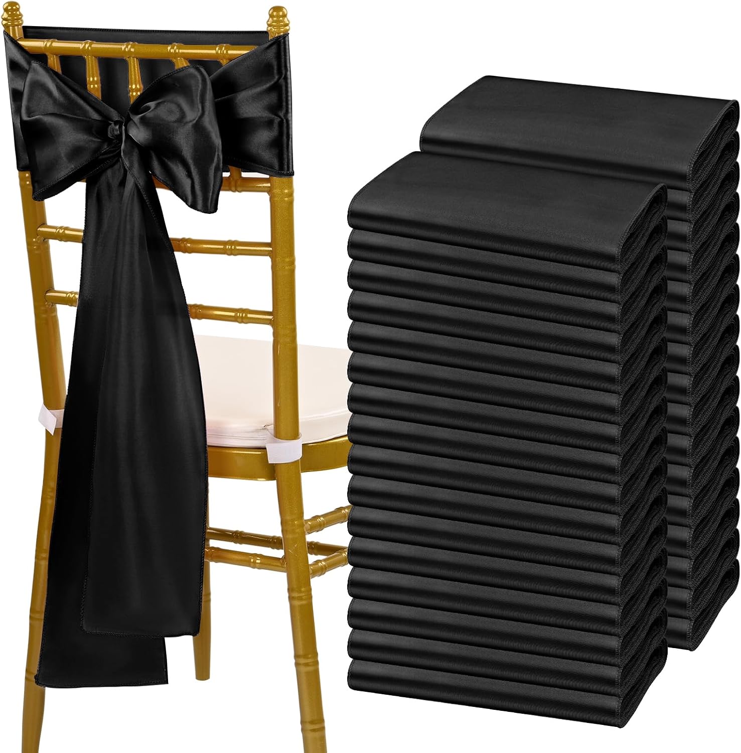 fani 120 PCS Black Satin Chair Sashes Bows Universal Chair Cover for Wedding Reception Restaurant Event Decoration Banquet,Party,Hotel Event Decorations (7 x 108 inch)
