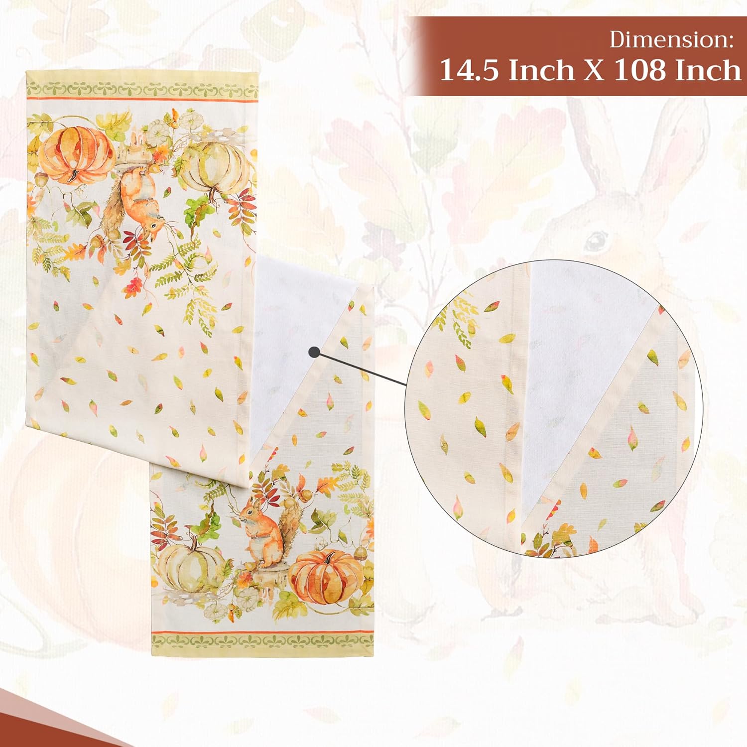 • Package includes: 1 table runner measuring 14.5" x 108". Ideal for banquet tables, dining tables, or adding a spring, Thanksgiving, Christmas theme to your party décor. Our table runners 108 inches long offers a unique charm for both casual and festive settings.