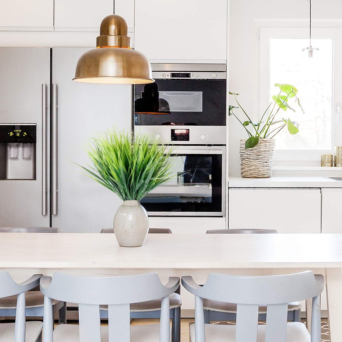 • 【Multifunctional decoration】 - designed for outdoor indoors decoration. These lifelike grasses add a charming charm to your front porch, walkway, garden,kitchen, windowsill,living room, dining table, bedroom, terrace and garden fence. Fake grass are very suitable for daily home garden decoration, birthdays, holidays, weddings, memorial places, DIY projects, etc.