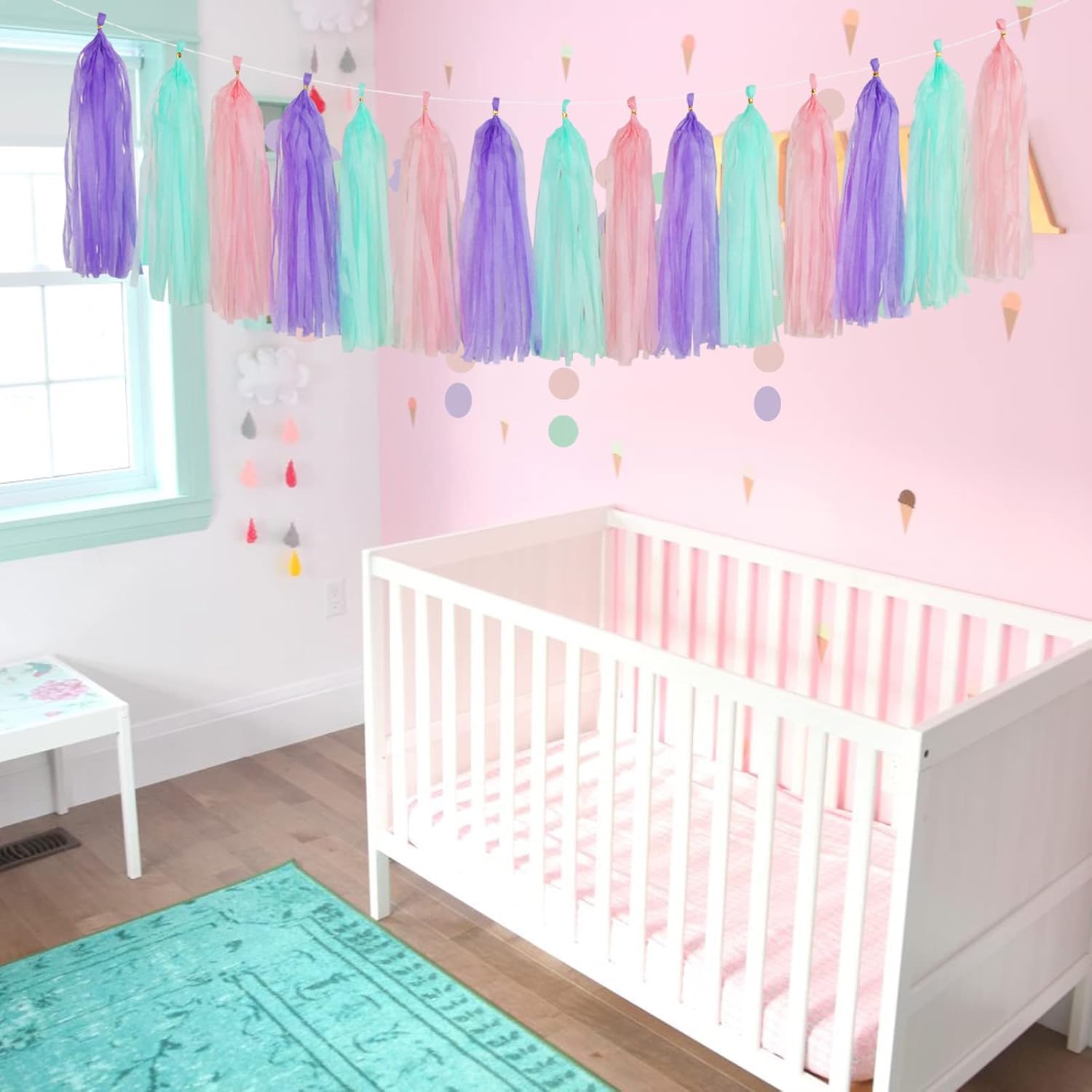 Pink-Purple Mint Mermaid Ocean-Themed Party-Decorations - 15pcs Tassel Garland Streamers Wedding Birthday Engagement Baby Bridal Shower Tassels Banner Decor Panduola