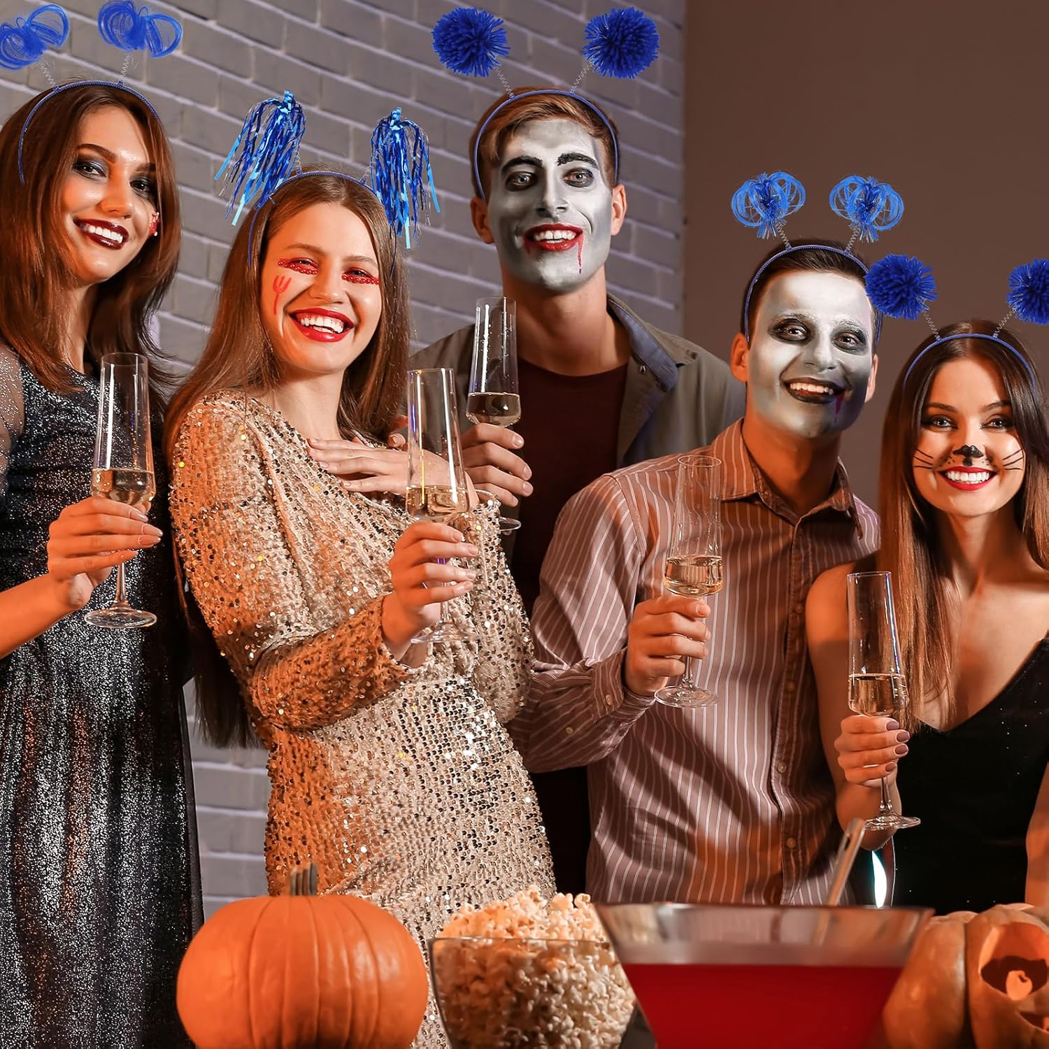 Censen 12 Pcs Halloween Pom Pom Party Headbands Tinsel Ponytails Spirit Head Bopper Headwear for Christmas Birthday Holiday
