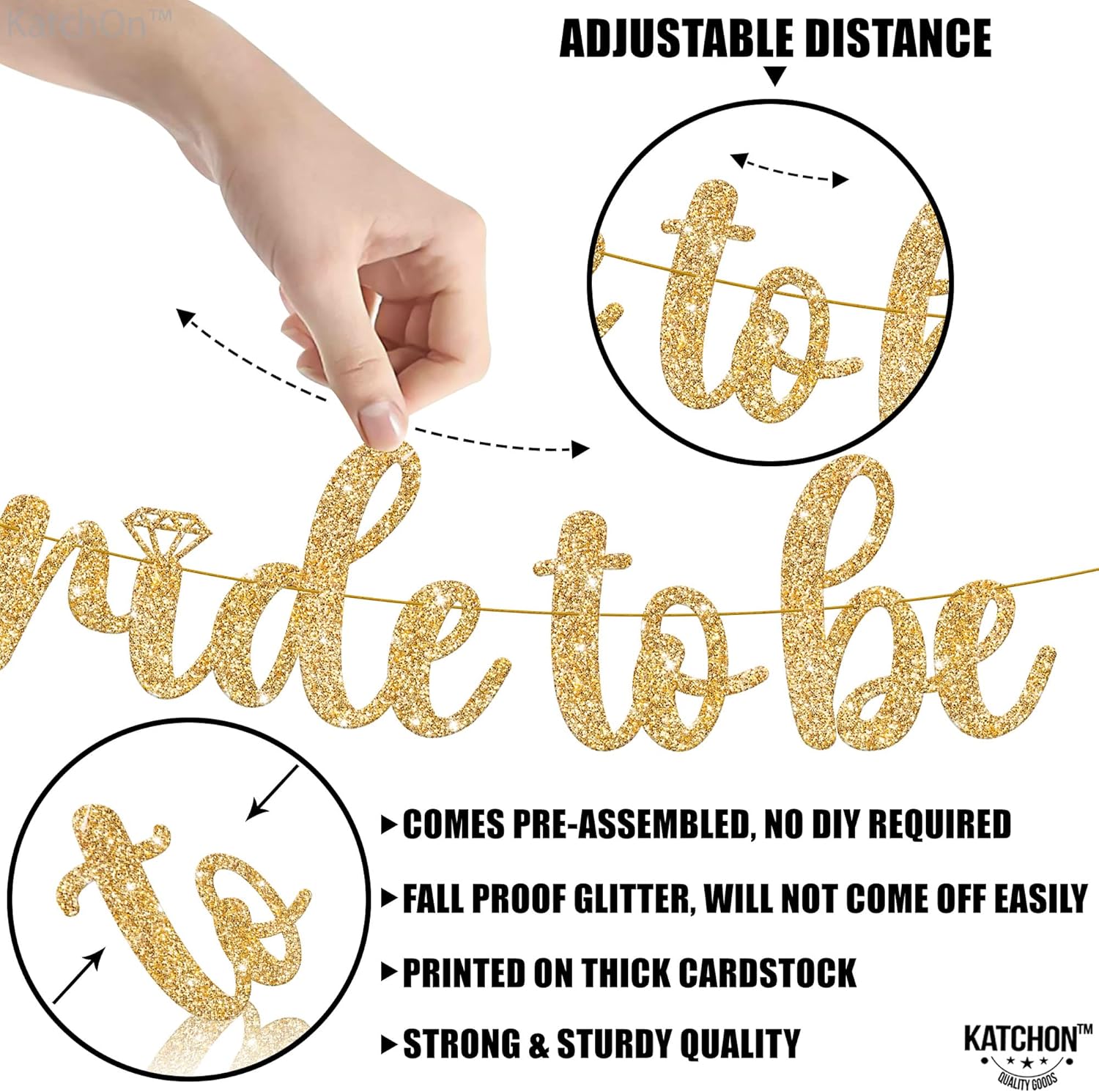 • LARGE SIZE, 10 FEET | GLITTER GOLD BRIDE TO BE BANNER WITH RING : Planning a fabulous and elegant bridal shower before you tie the knots? Decorate your event with these authentic script Gold bride to be banner. This vibrant 10 Feet Real Glitter Bridal shower decorations gold is perfect for fun sweet bride to be party decorations before the most awaited day of wedding. This bride to be banner decorations will complete your bachelorette party decorations supplies kit.
