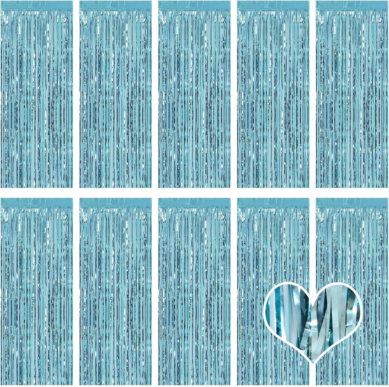 • {Size & Quantity}: Set of 10, each pack size is 3.2ft x 8.2ft (1m x 2.5m). The foil curtain is 8 feet long, the perfect length and size to cover a wide area, which is very suitable for indoors or outdoors to create a perfect background decoration.
