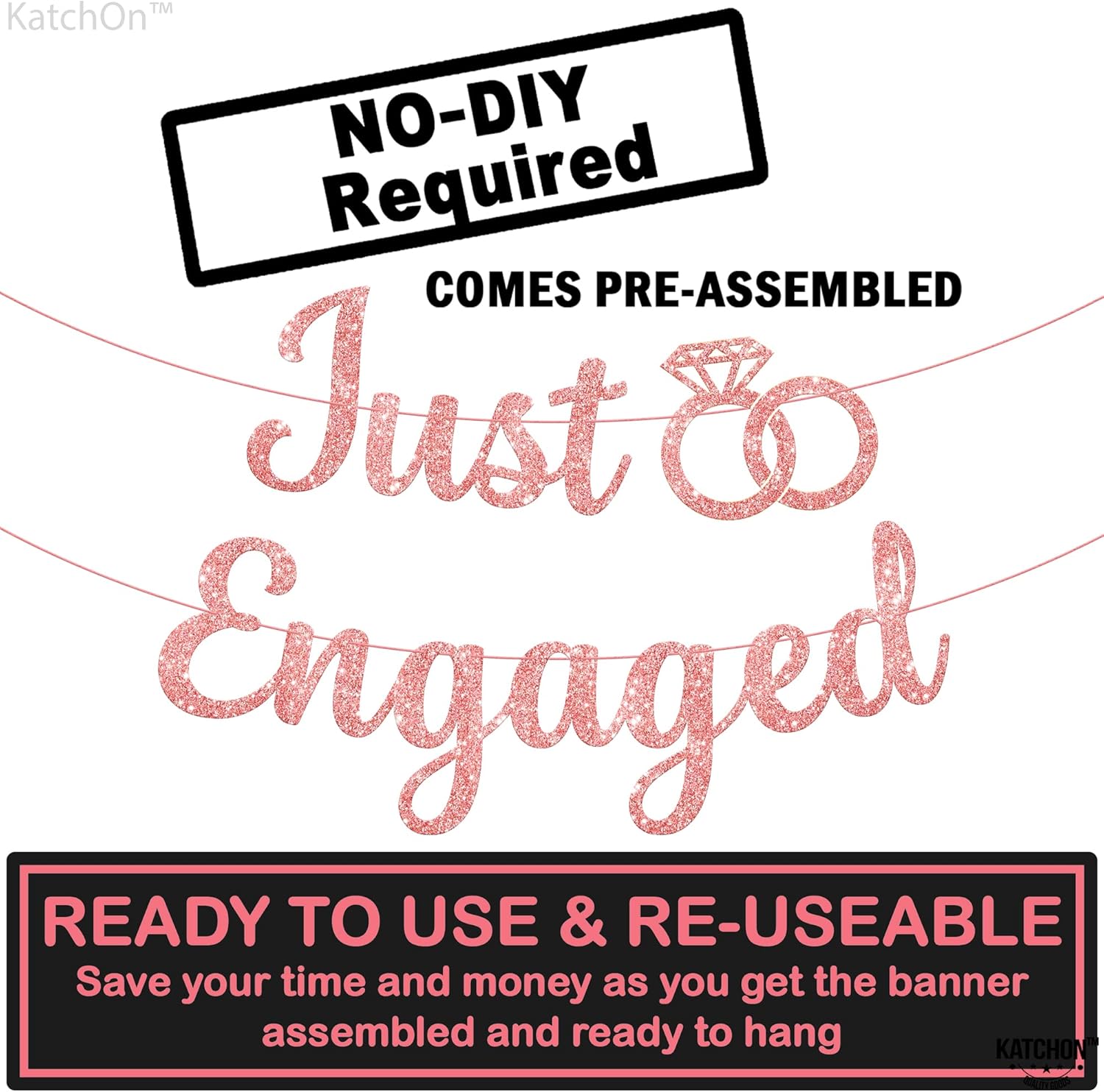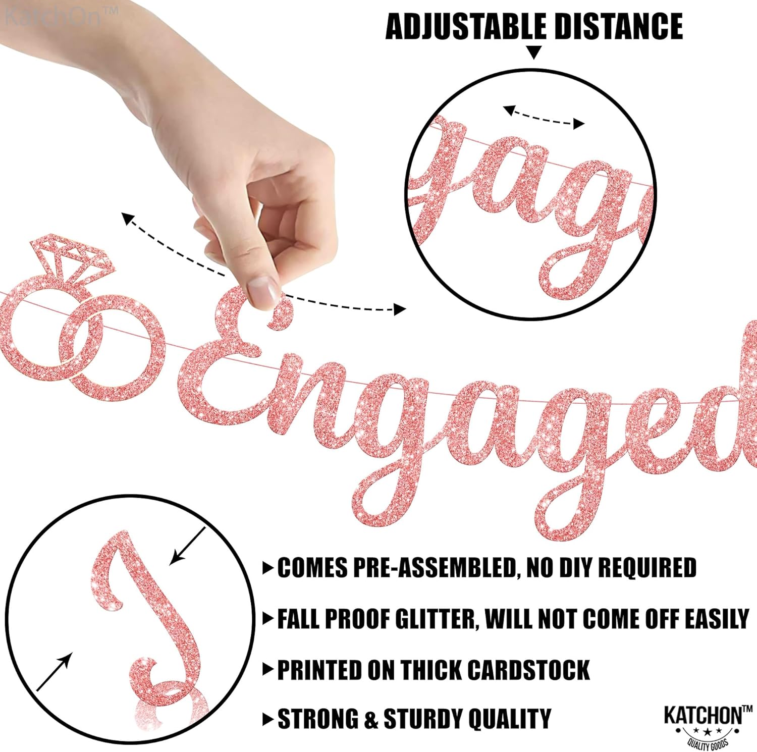 KatchOn Glitter Rose Gold Engagement Banner - 10 Feet, No DIY | Engagement Party Decorations | Just Engaged Sign