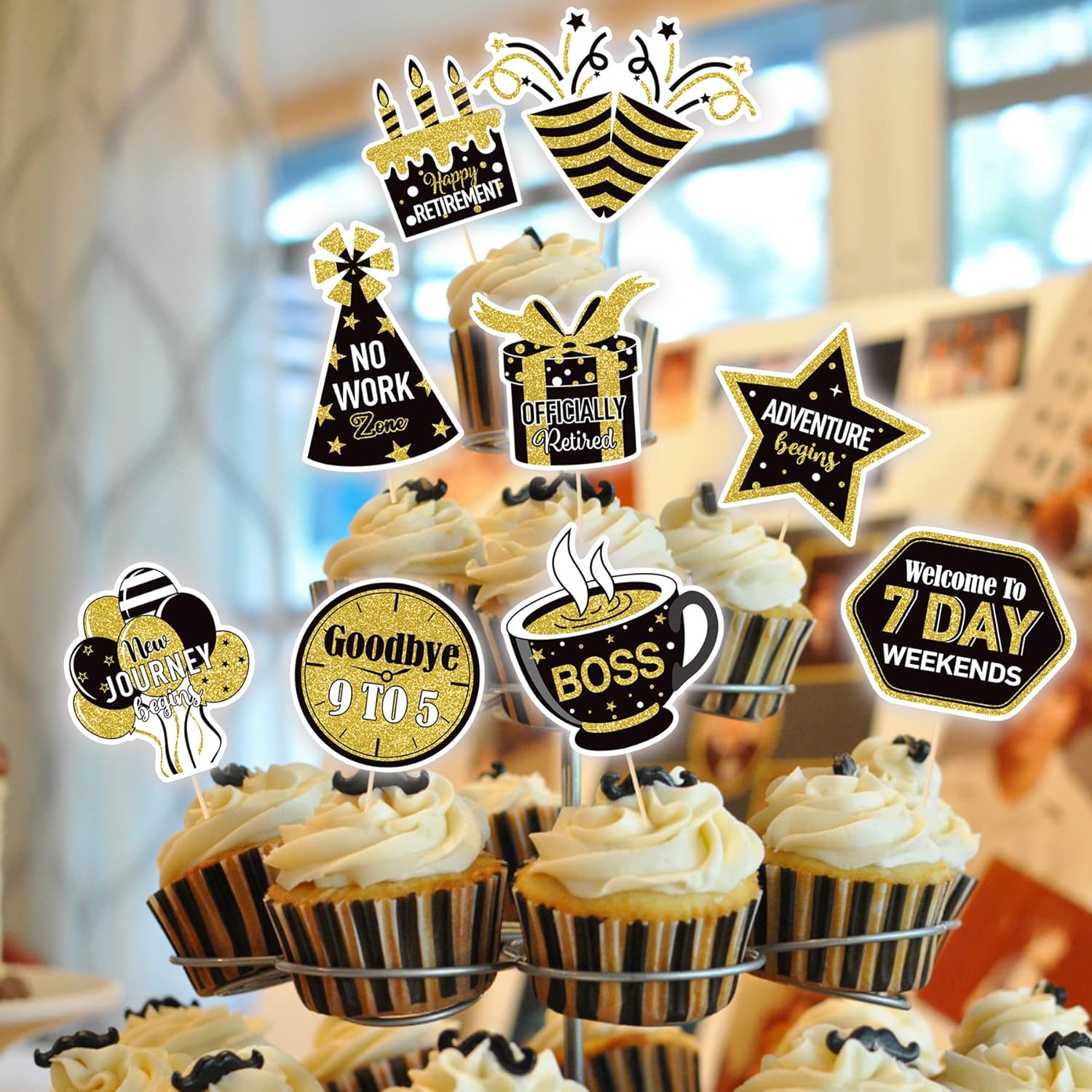 • 【What You Will Get:】36Pcs Happy Retirement cupcake toppers set, 9 designs, 4 for each. Ample quantity can meet your different decoration needs. NO DIY REQUIRED.
