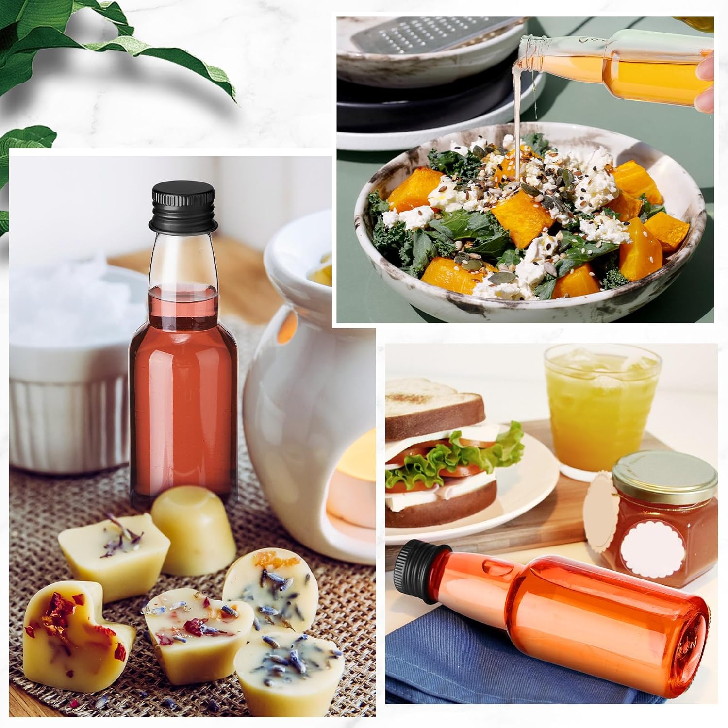 • Size Information: the mini plastic bottles measure approx. 4.33 inches/ 110 mm in height, and 1.42 inches/ 36 mm in bottom diameter, and can hold up to 60 ml/ 2 fl oz, suitable for holding wine, hot sauce, dressing and so on, bringing much convenience to you