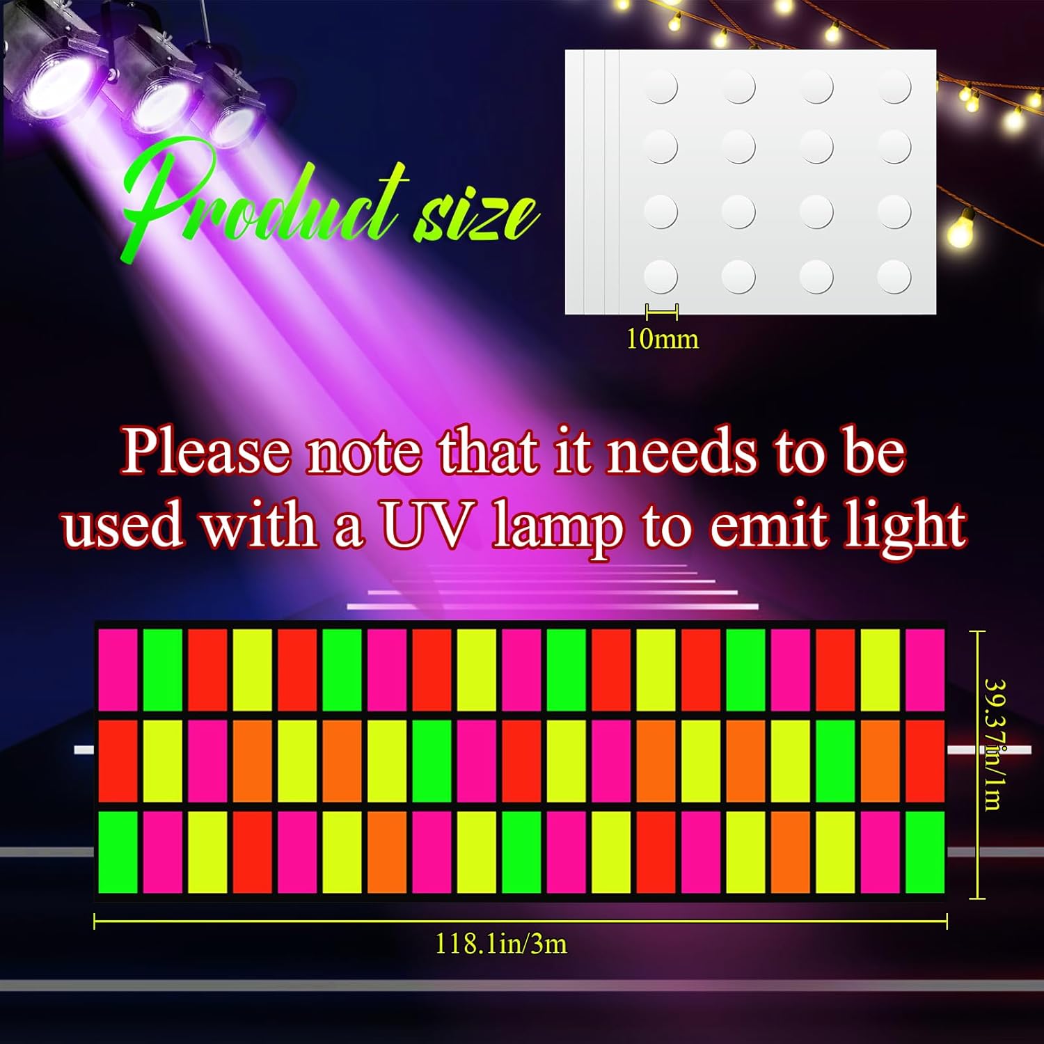 • Package Contents: the package includes 1 piece of neon dance floor and 4 sheets of sticky dots (20 pieces per sheet), a nice combination that is suitable for both indoor and outdoor use and may fulfill your diverse party decor and use requirements