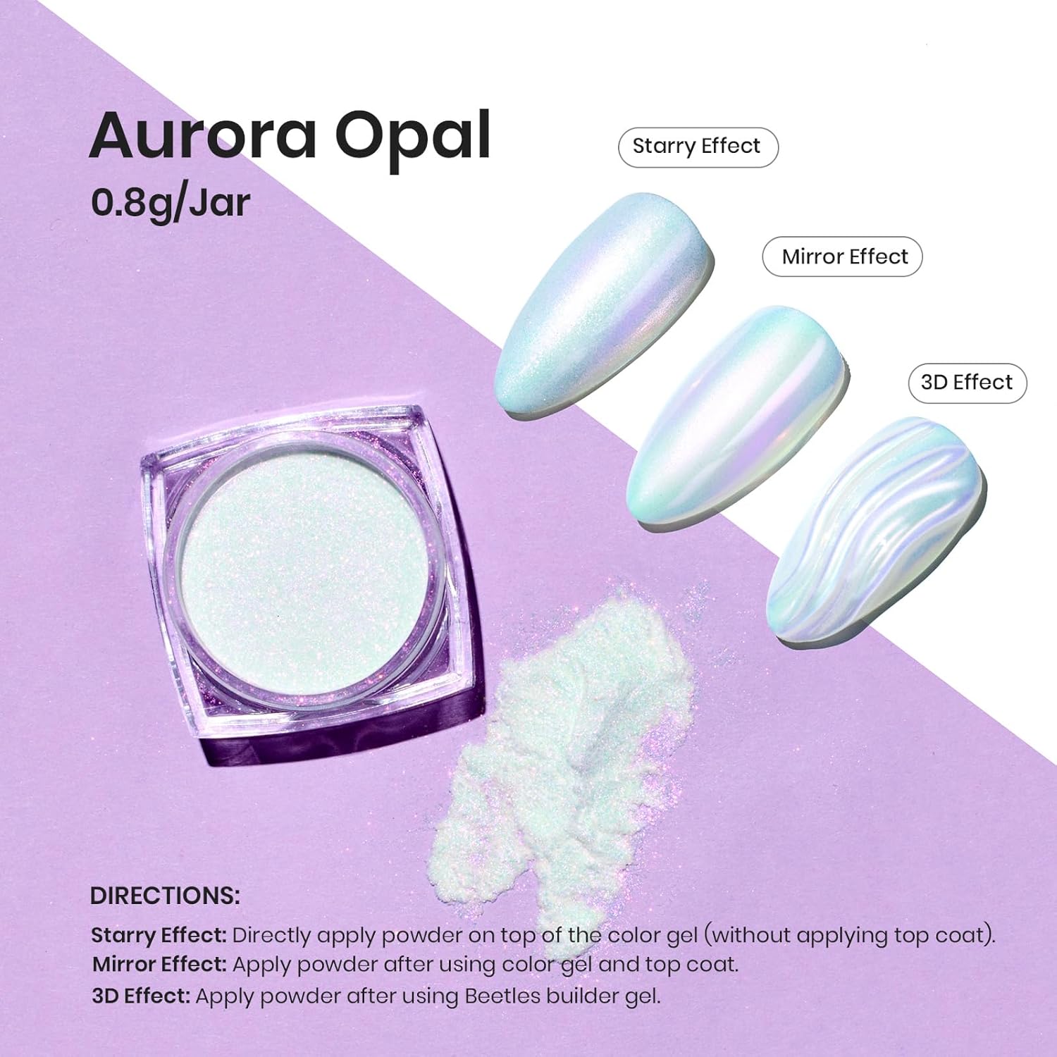 Beetles Chrome Nail Powder Mirror Effect Glazed Aurora Opal Chrome Powder for Gel Nails Unicorn Chrome Powder Manicure DIY Nail Art Decoration 0.03oz/0.8g