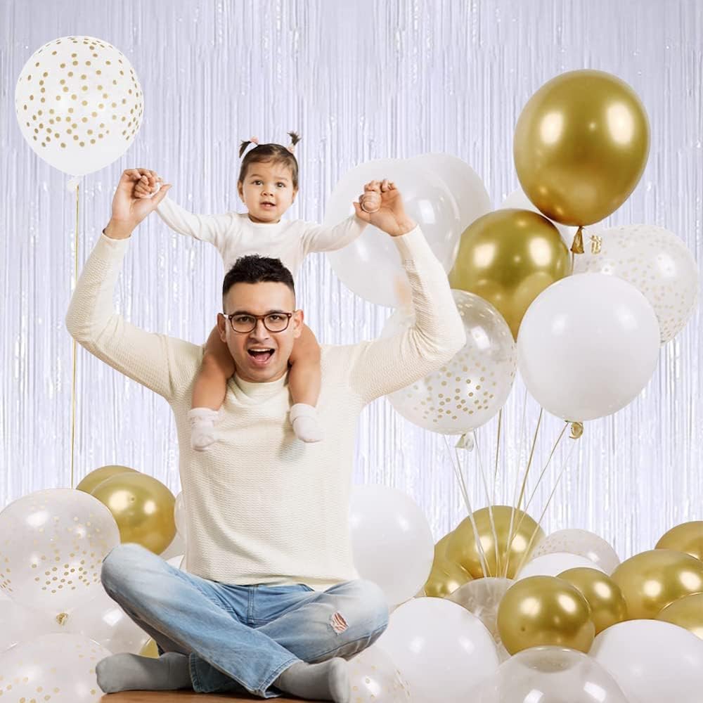 BEISHIDA 4 Pcs White Door Streamers Tinsel Curtain Party Streamers Backdrop Fringe Foil Wall Background for Birthday Halloween Christmas Wedding Party Decoration(3.28 ft x 6.56 ft)