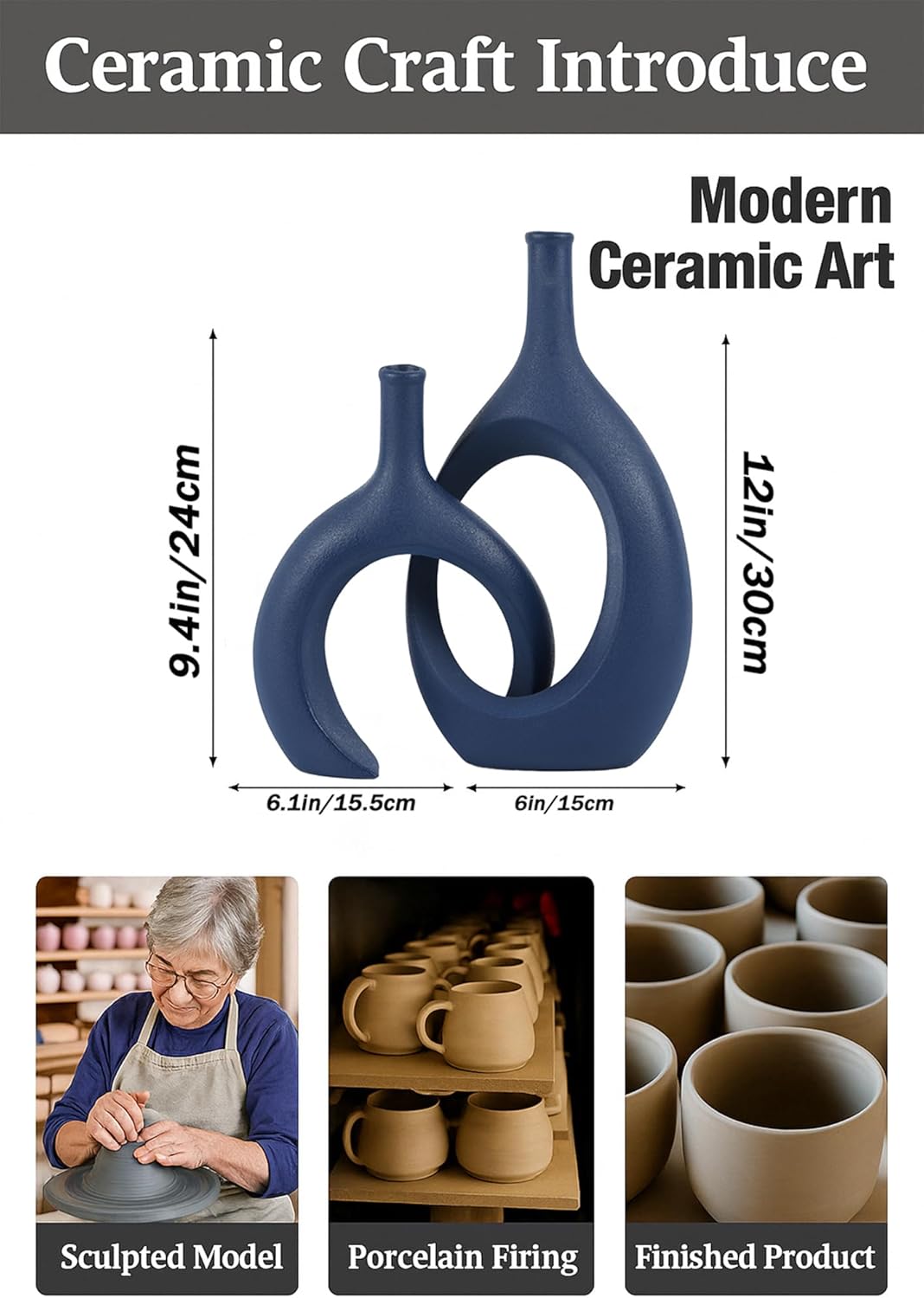 • VERSATILE AND STUNNING DESIGN: This blue boho modern decor vase set measures 6.1"L*12.0"H (Large) and 6.1"L*9.4"H (Small), offering endless possibilities . Its stunning nestled ceramic design makes it a beautiful stand-alone piece, or you can enhance it with artificial flowers, stems, bouquets, pampas grass, or greenery for vibrant color. Perfect as a table centerpiece, family room, mantel, dining room, bathroom, or on a shelf on a covered patio - it will add a touch of elegance and sophistication wherever it is placed.