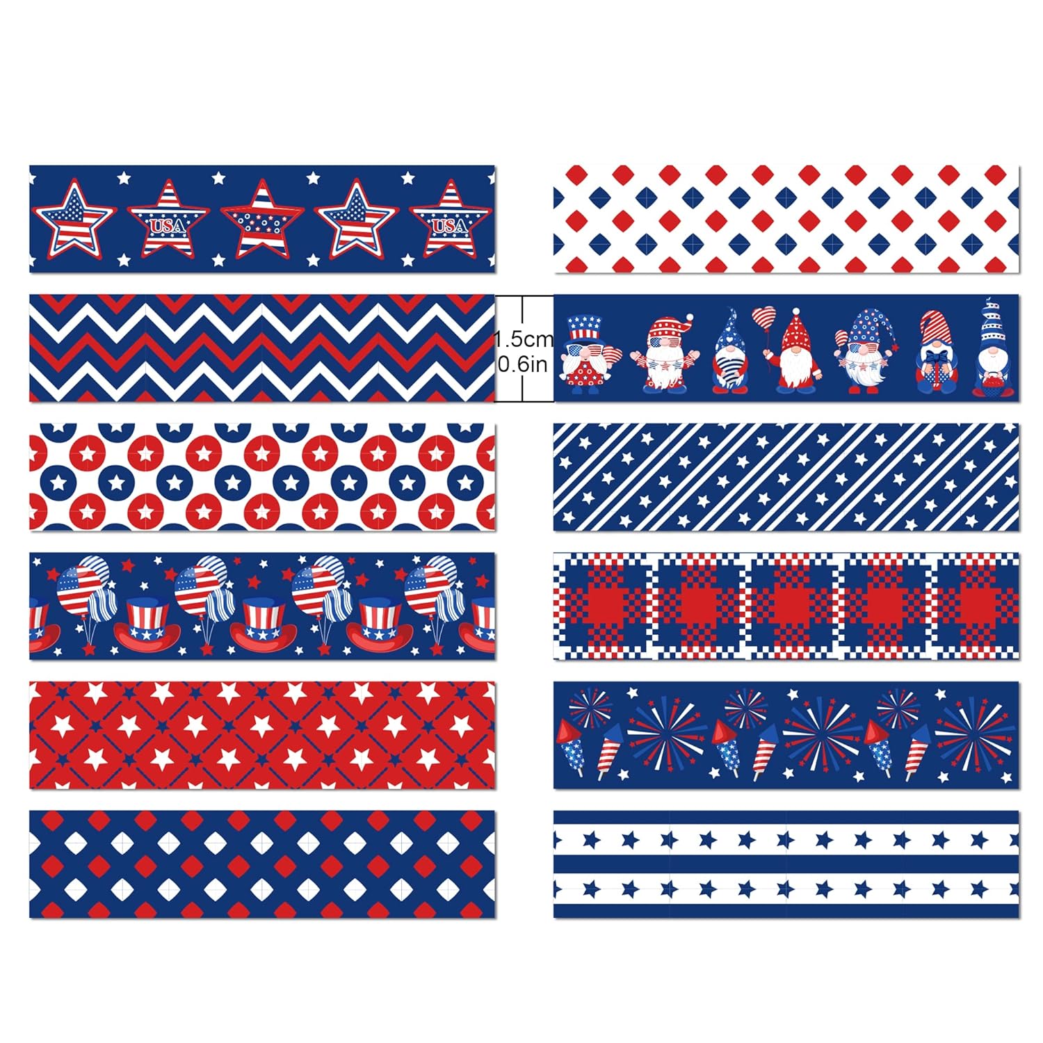 Washi Tape 12 Rolls Washi Tape Set Patriotic Packing Tape American Flag Washi Masking Tape Decorative Paper Stickers Decorative Tape for Gifts Wrapping DIY Art Crafts
