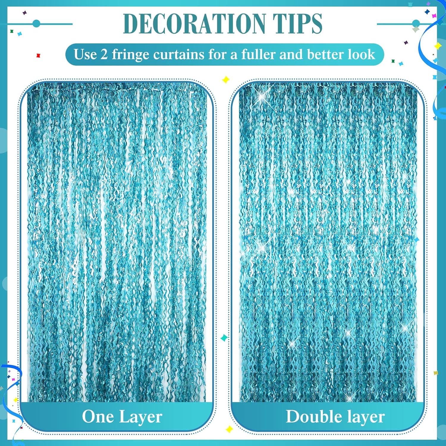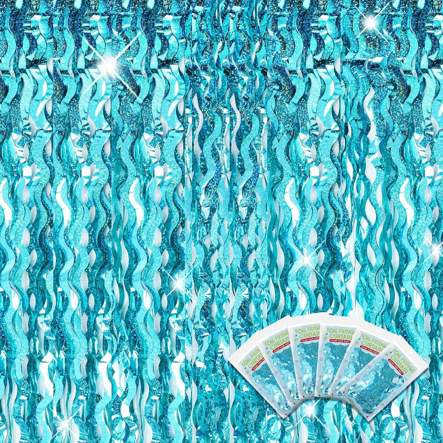 Jutom 6 Pieces 3.3 x 6.6 ft Wavy Tinsel Foil Fringe Curtains Foil Fringe Streamer Backdrop Party Curtain for Sea Mermaid Baby Shower Birthday Party Decoration(Blue Green)