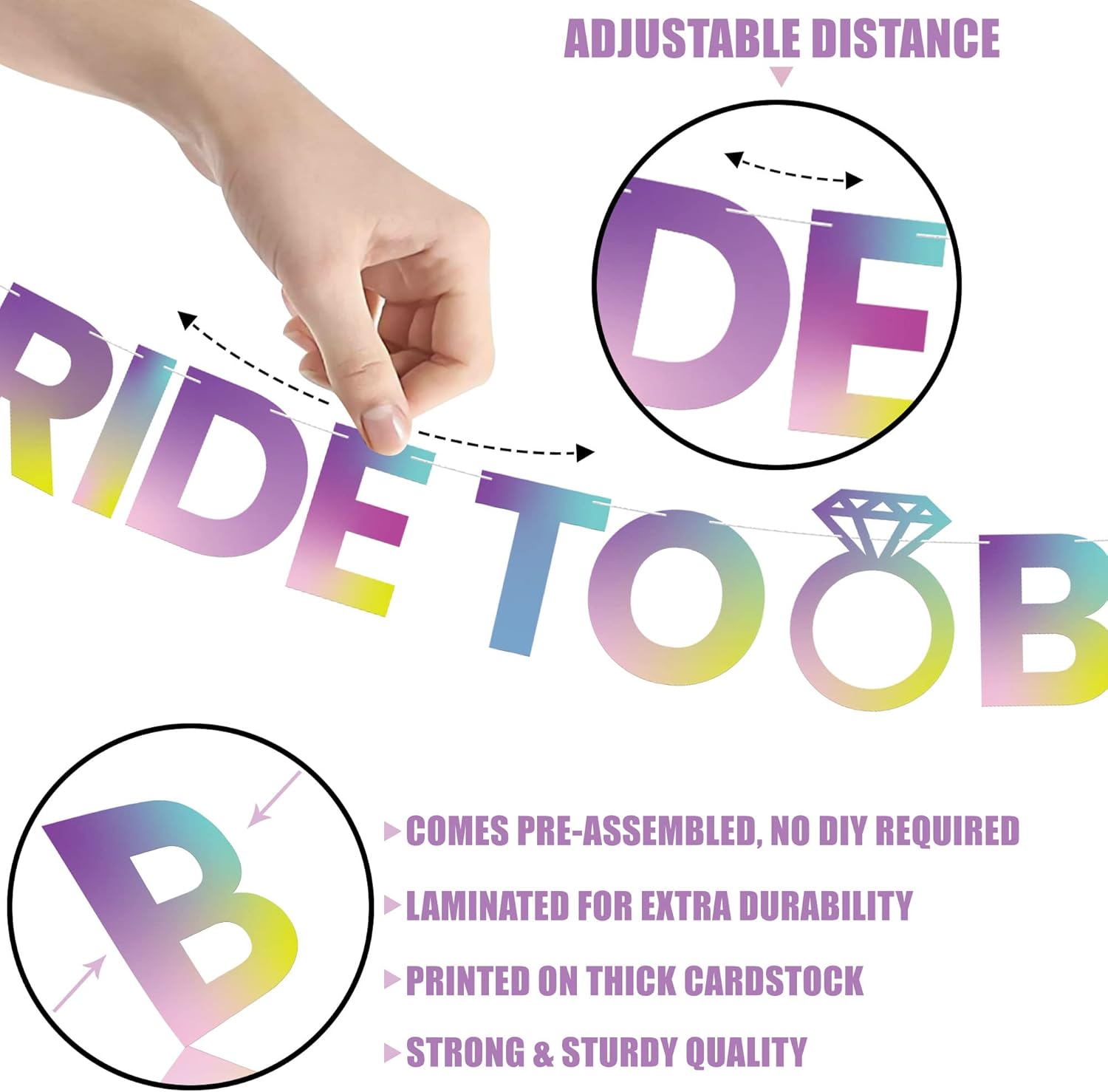 • LARGE SIZE, 10 FEET | RAINBOW BRIDE TO BE BANNER WITH RING : Planning a fabulous and elegant bridal shower before you tie the knots? Decorate your event with this authentic iridescent bride to be banner. This vibrant 10 Feet Rainbow Banner is perfect for fun sweet bride to be party decorations before the most awaited day of wedding. This iridescent bachelorette party will complete your bachelorette party decorations supplies kit. and many more party occasions.