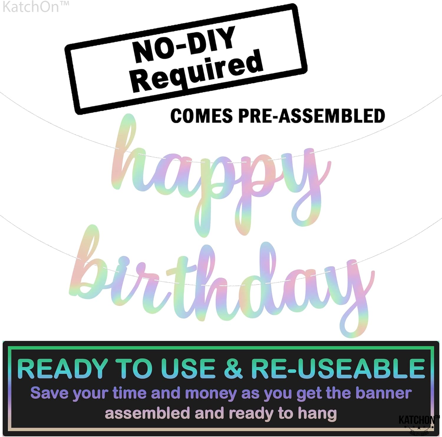 KatchOn, Pre-Strung Iridescent Happy Birthday Banner - 10 Feet | Iridescent happy Birthday Sign for Holographic Happy Birthday Decorations | Mermaid Birthday Decorations | Iridescent Party Decorations