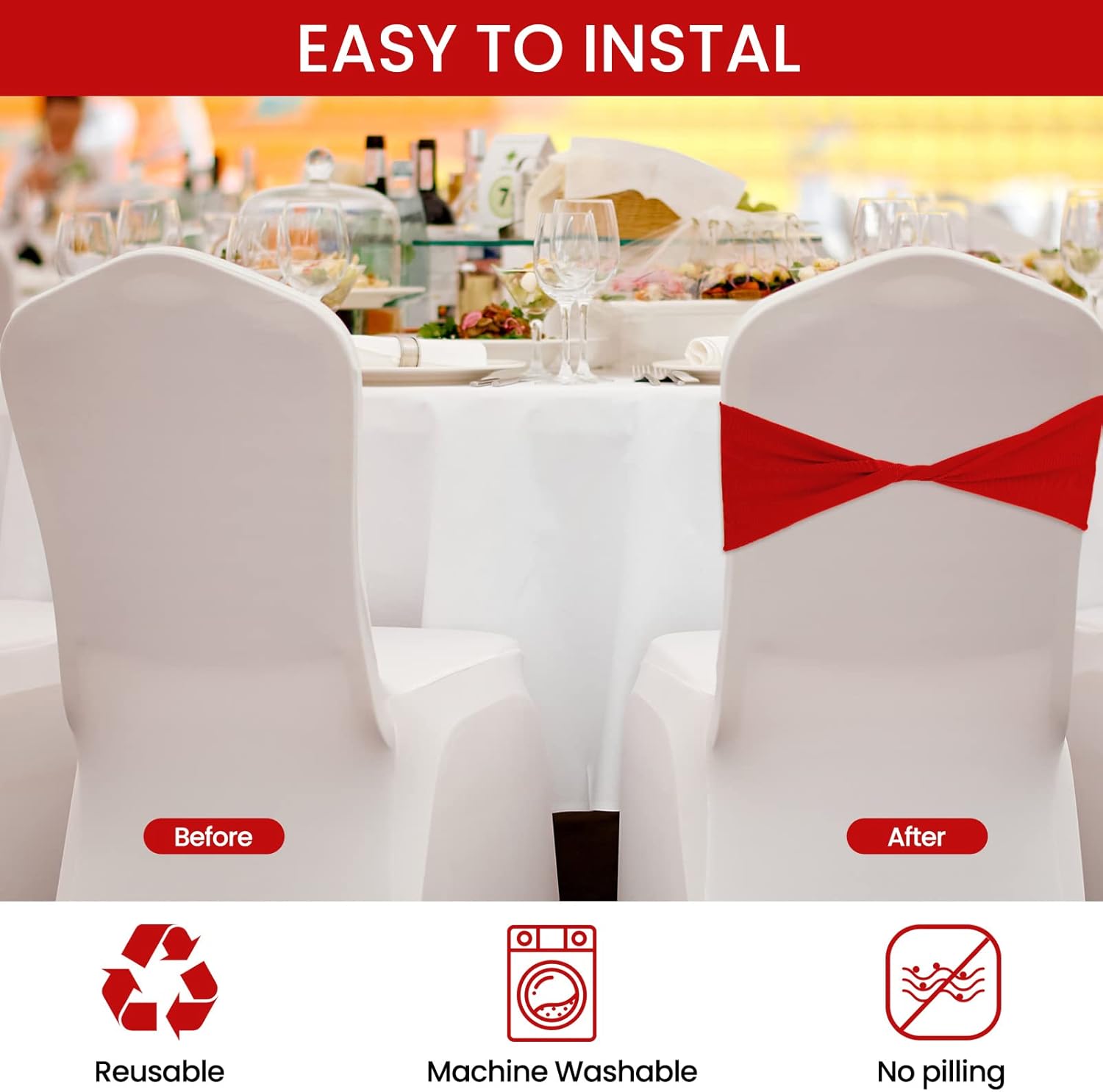 Kinlop 50 Pcs Spandex Chair Sashes Bows Chair Bands Slider Sashes for Covers Elastic Bands Ties Without Buckle Decorations for Wedding Party Events Ceremony Birthday(Red)
