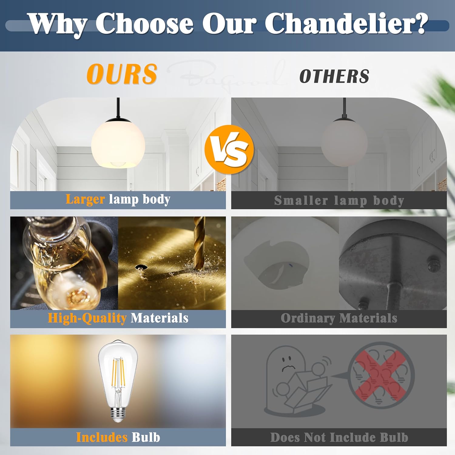 • [Bulbs Included & Dimmable]:The milk glass globe light fixture designed with 1 x E26 socket with a max power of 60W.When you buy other dimmable bulbs and combine it with a wall dimmer(not included) it can be fully dimmable. so you can use this fixture with confidence