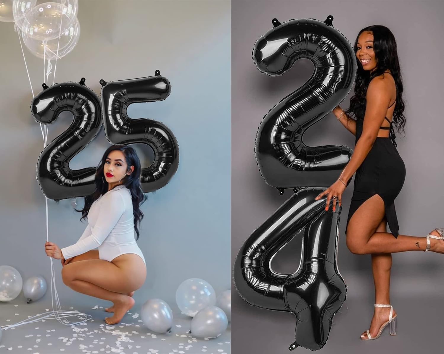 • 【How to Use】- Fill 90% with helium or air, then tie with ribbon or secure with balloon tape. The foil balloons can be reused and deflated with a straw after the party. When you put them away, they can turn into beautiful black number balloons again next time!